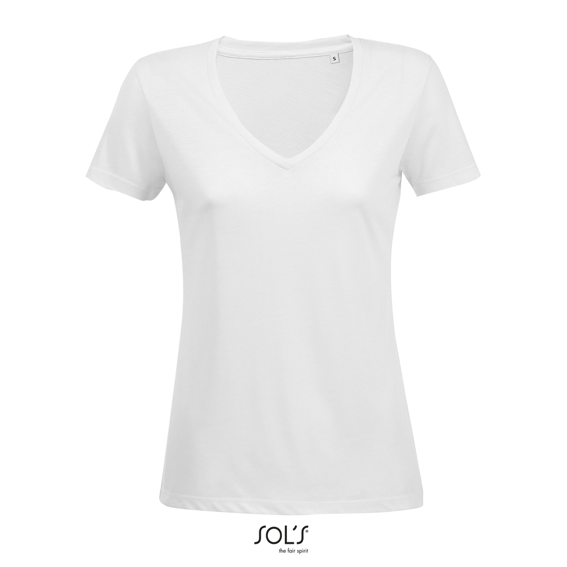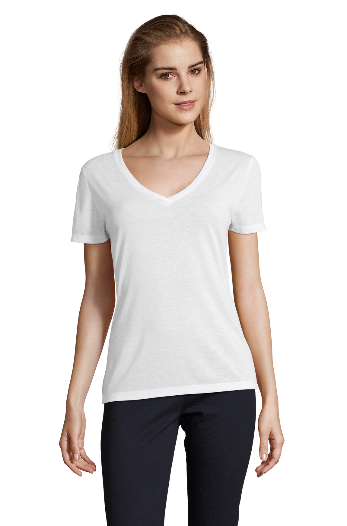 Σχέδιο και Χαρακτηριστικά: Το T-shirt διαθέτει κοντά μανίκια, πλαινές ραφές και βαθιά λαιμόκοψη τύπου «V» με φακαρόλα στο λαιμό, προσφέροντας μια κομψή και άνετη εμφάνιση. Ιδανικό για επαγγελματικές εμφανίσεις, το ρούχο αυτό συνδυάζει στυλ και functionality, κάνοντάς το κατάλληλο για κάθε περίσταση.