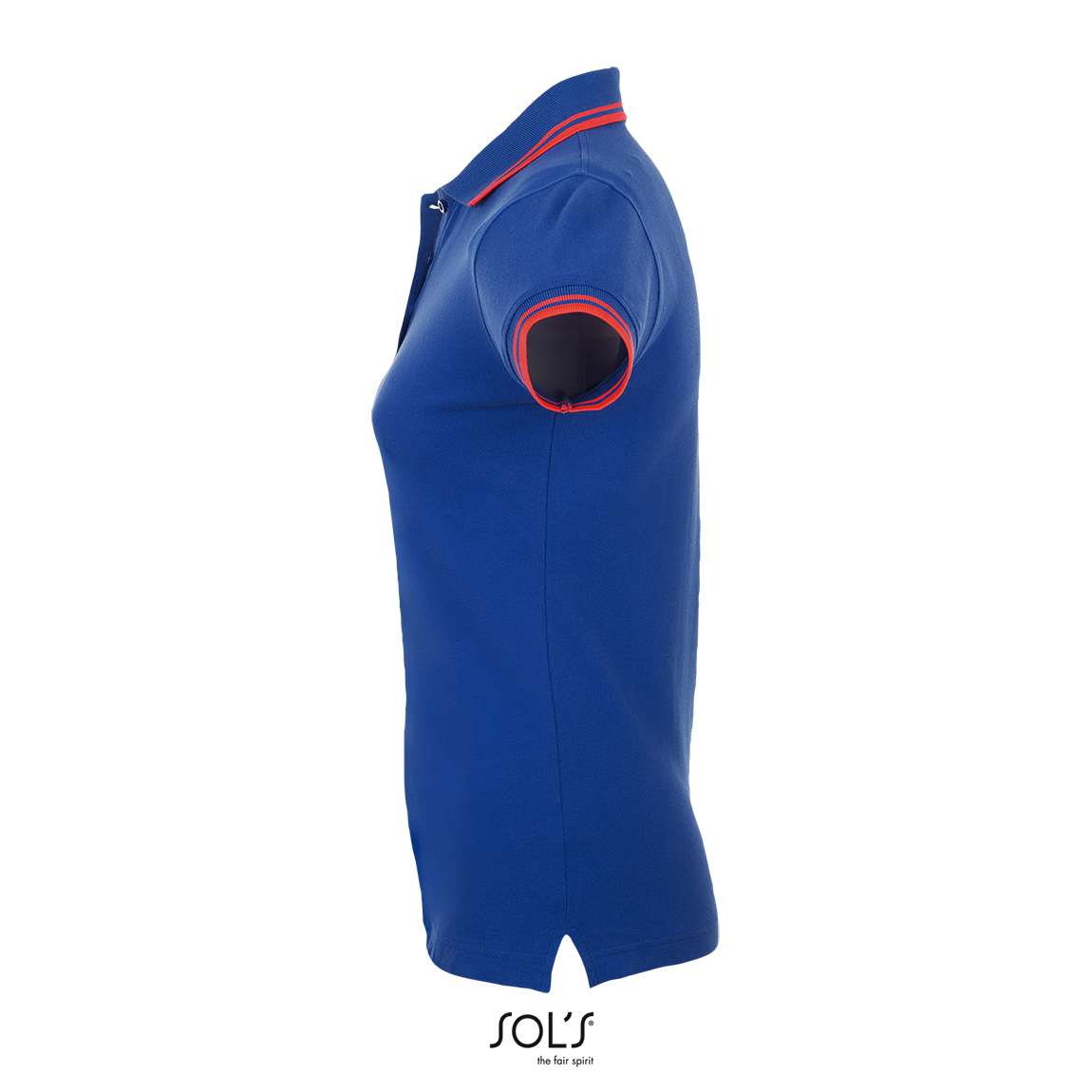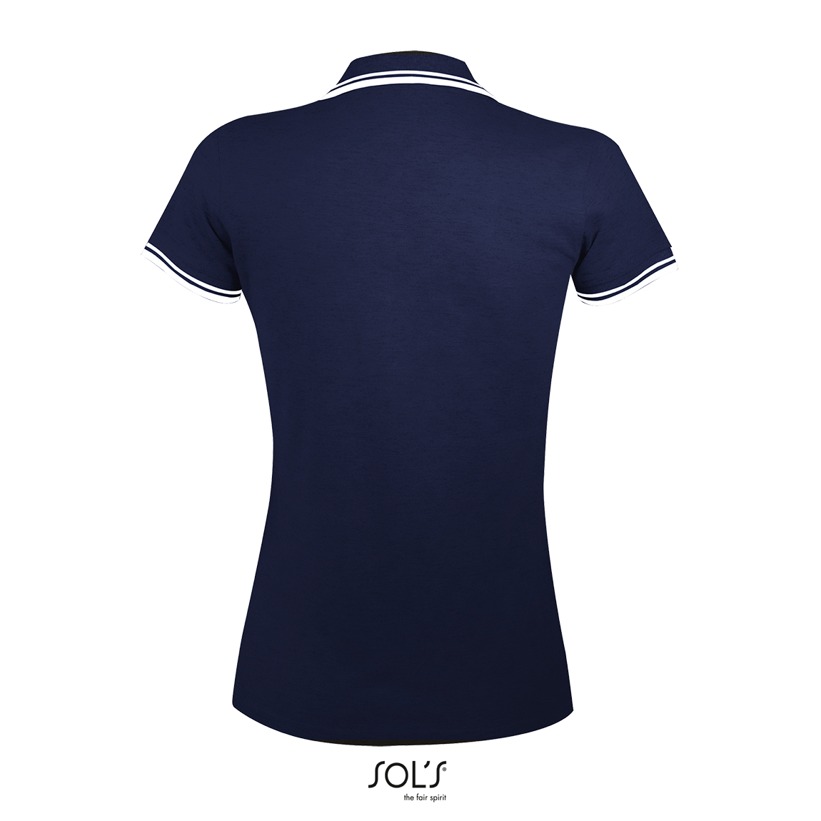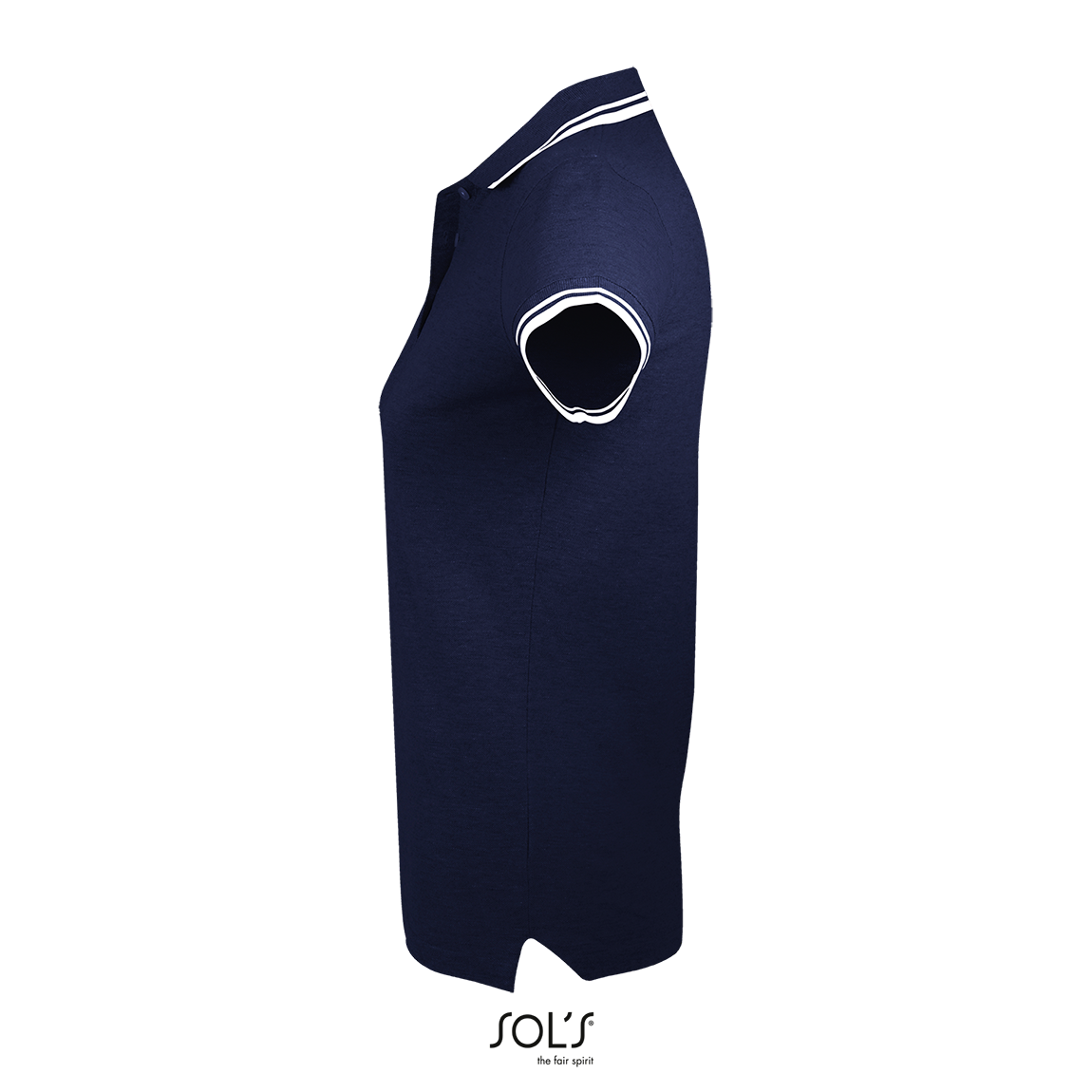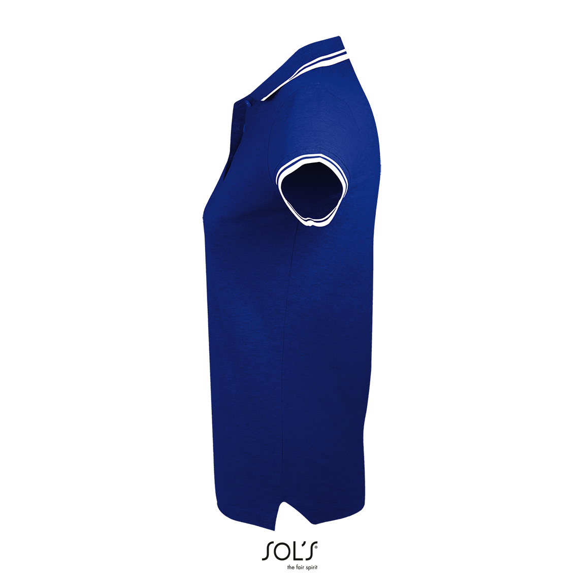 Το γυναικείο πόλο πικέ διαθέτει κοντά μανίκια και πλαϊνά σκισίματα για άνεση στην κίνηση. Η πατιλέτα διαθέτει 3 κουμπιά στον ίδιο τόνο και επιπλέον κουμπί στην εσωτερική ραφή, ενώ ο ριπ γιακάς και τα μανίκια προσθέτουν στυλ. Διατίθεται σε μια στενή γραμμή με ριγέ διχρωμία στο γιακά και τα μανίκια, κάνοντάς το ιδανικό για επαγγελματική χρήση.
