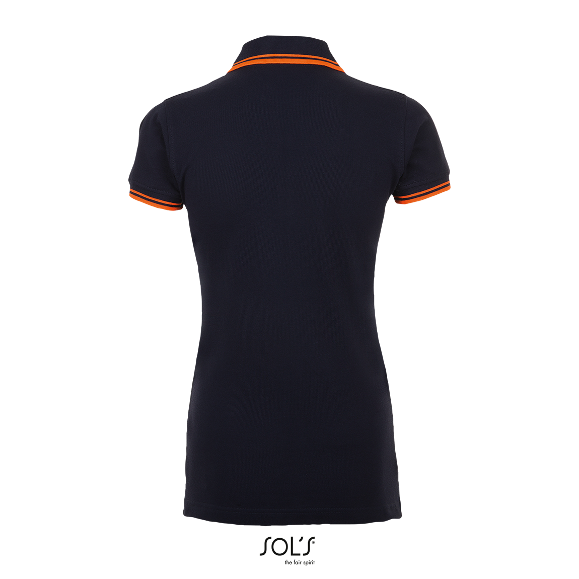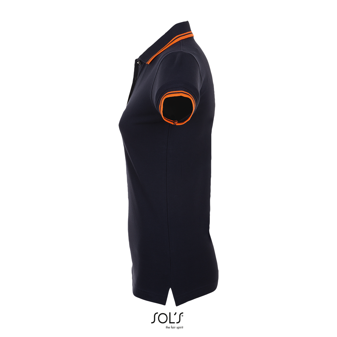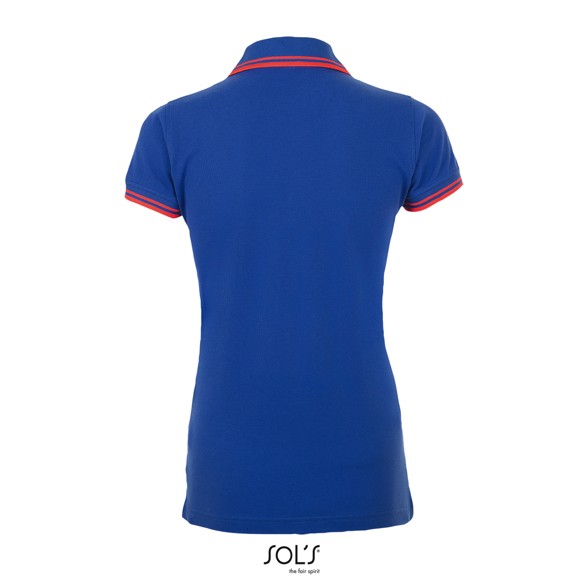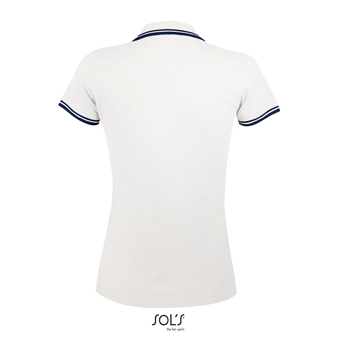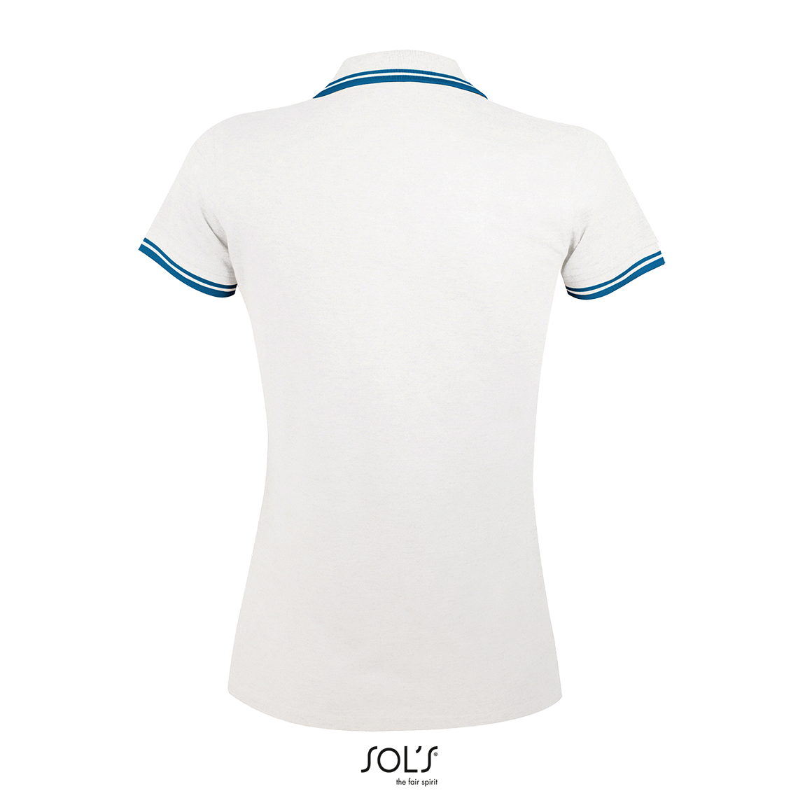 Το γυναικείο πόλο πικέ διαθέτει κοντά μανίκια και πλαϊνά σκισίματα για άνεση στην κίνηση. Η πατιλέτα διαθέτει 3 κουμπιά στον ίδιο τόνο και επιπλέον κουμπί στην εσωτερική ραφή, ενώ ο ριπ γιακάς και τα μανίκια προσθέτουν στυλ. Διατίθεται σε μια στενή γραμμή με ριγέ διχρωμία στο γιακά και τα μανίκια, κάνοντάς το ιδανικό για επαγγελματική χρήση.