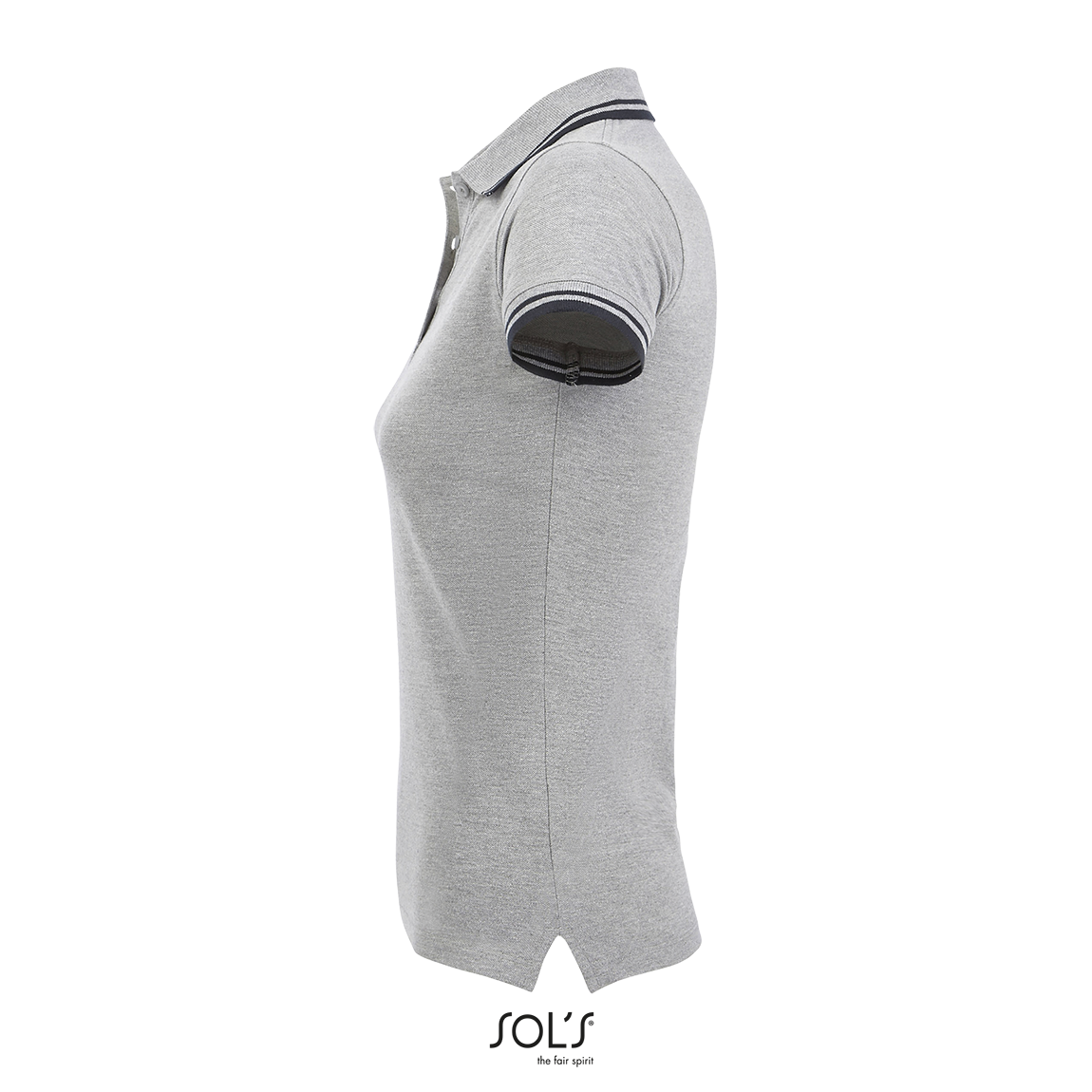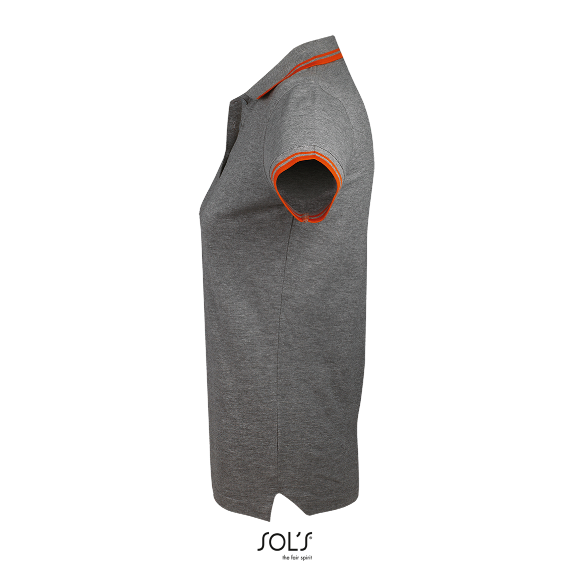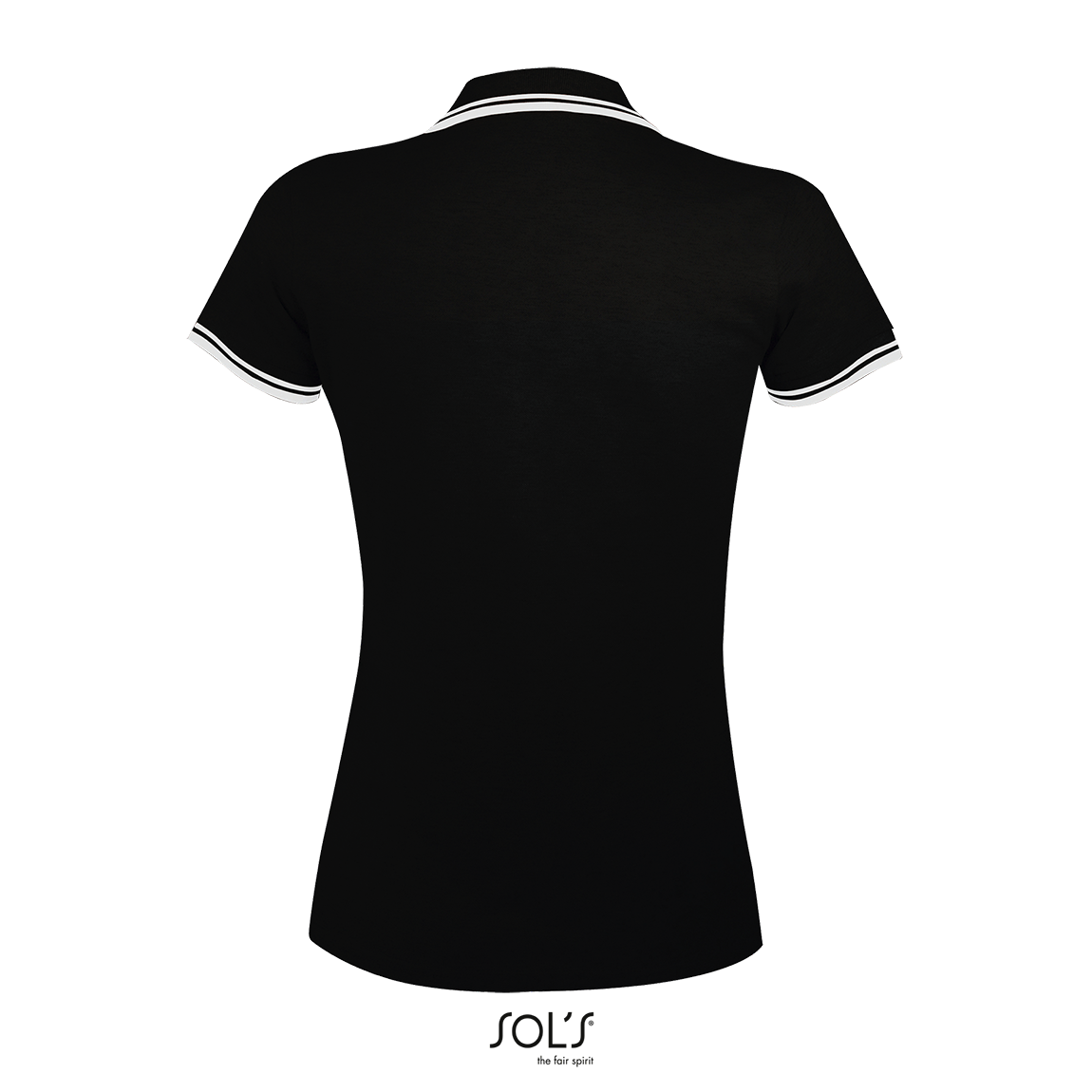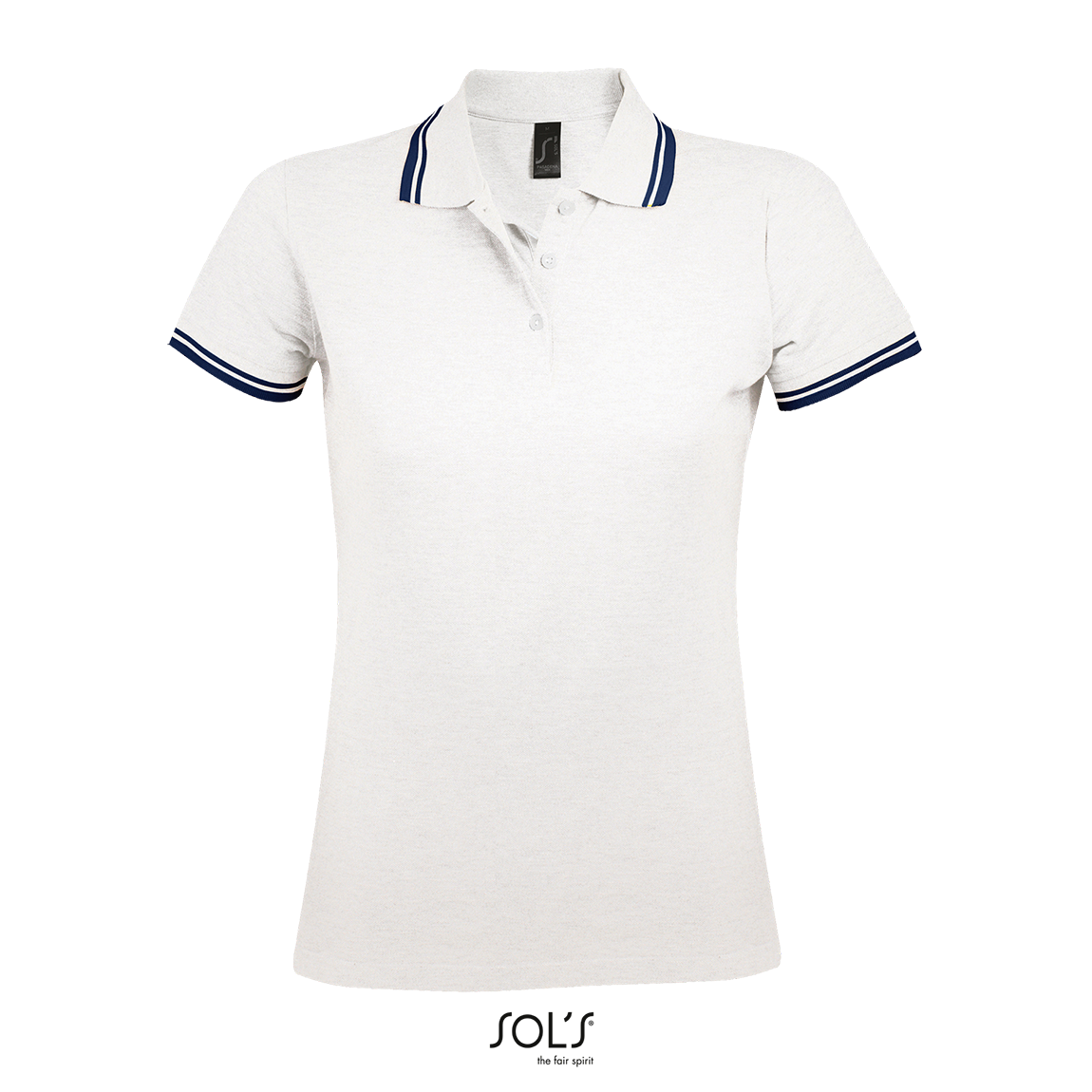 Το γυναικείο πόλο πικέ διαθέτει κοντά μανίκια και πλαϊνά σκισίματα για άνεση στην κίνηση. Η πατιλέτα διαθέτει 3 κουμπιά στον ίδιο τόνο και επιπλέον κουμπί στην εσωτερική ραφή, ενώ ο ριπ γιακάς και τα μανίκια προσθέτουν στυλ. Διατίθεται σε μια στενή γραμμή με ριγέ διχρωμία στο γιακά και τα μανίκια, κάνοντάς το ιδανικό για επαγγελματική χρήση.