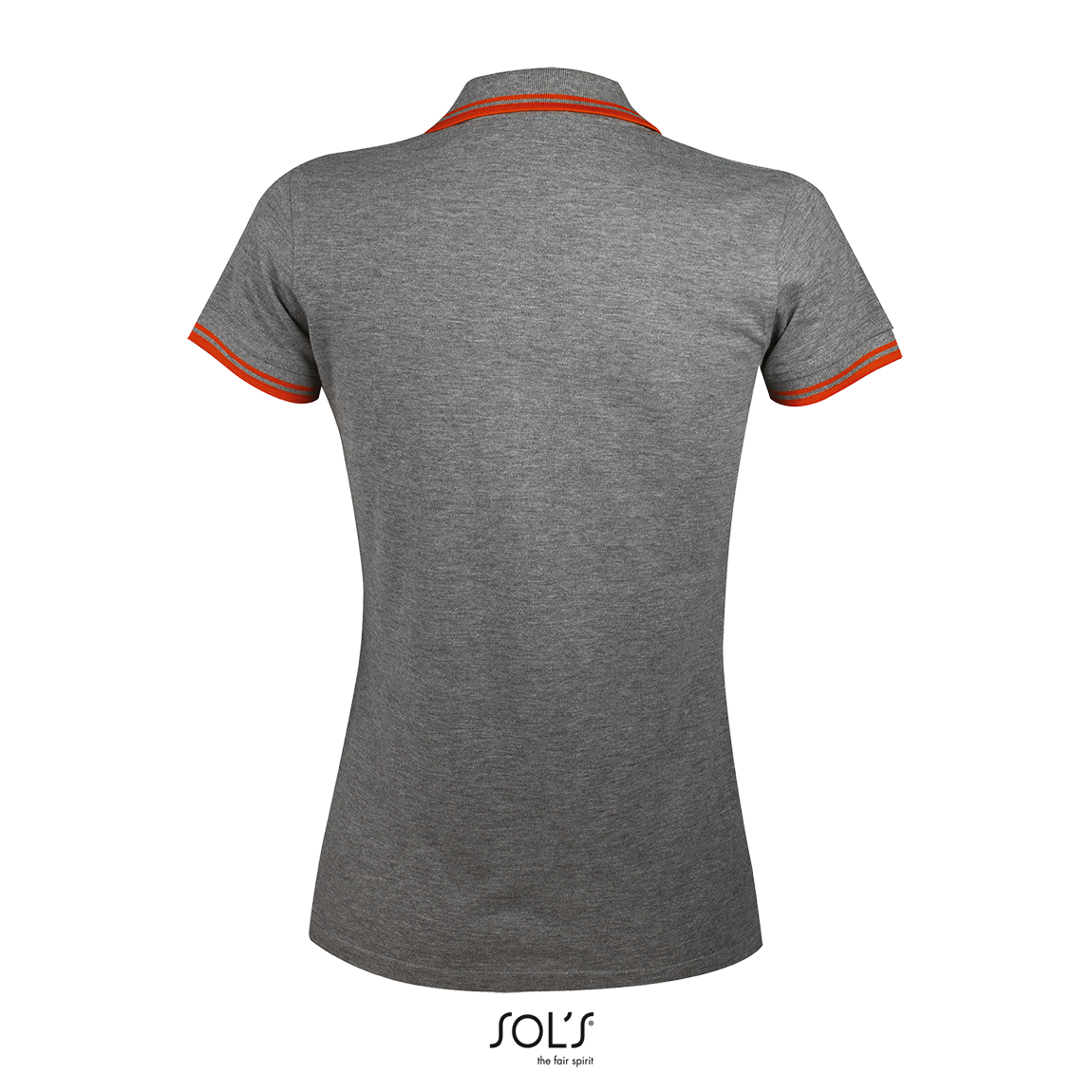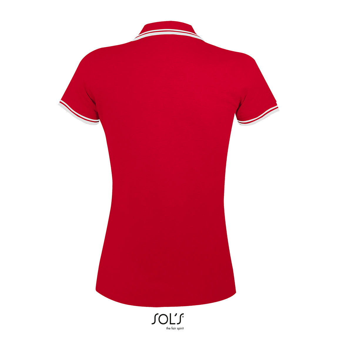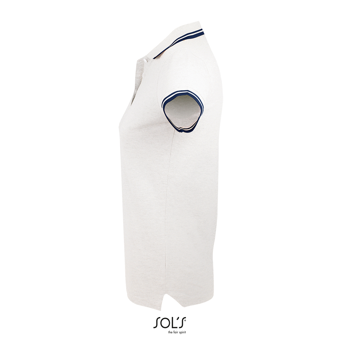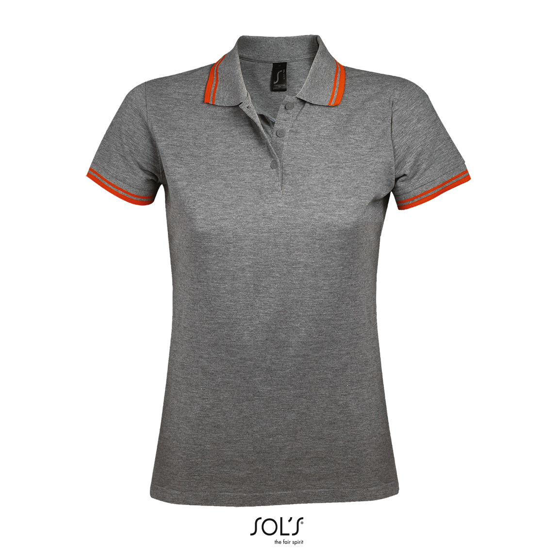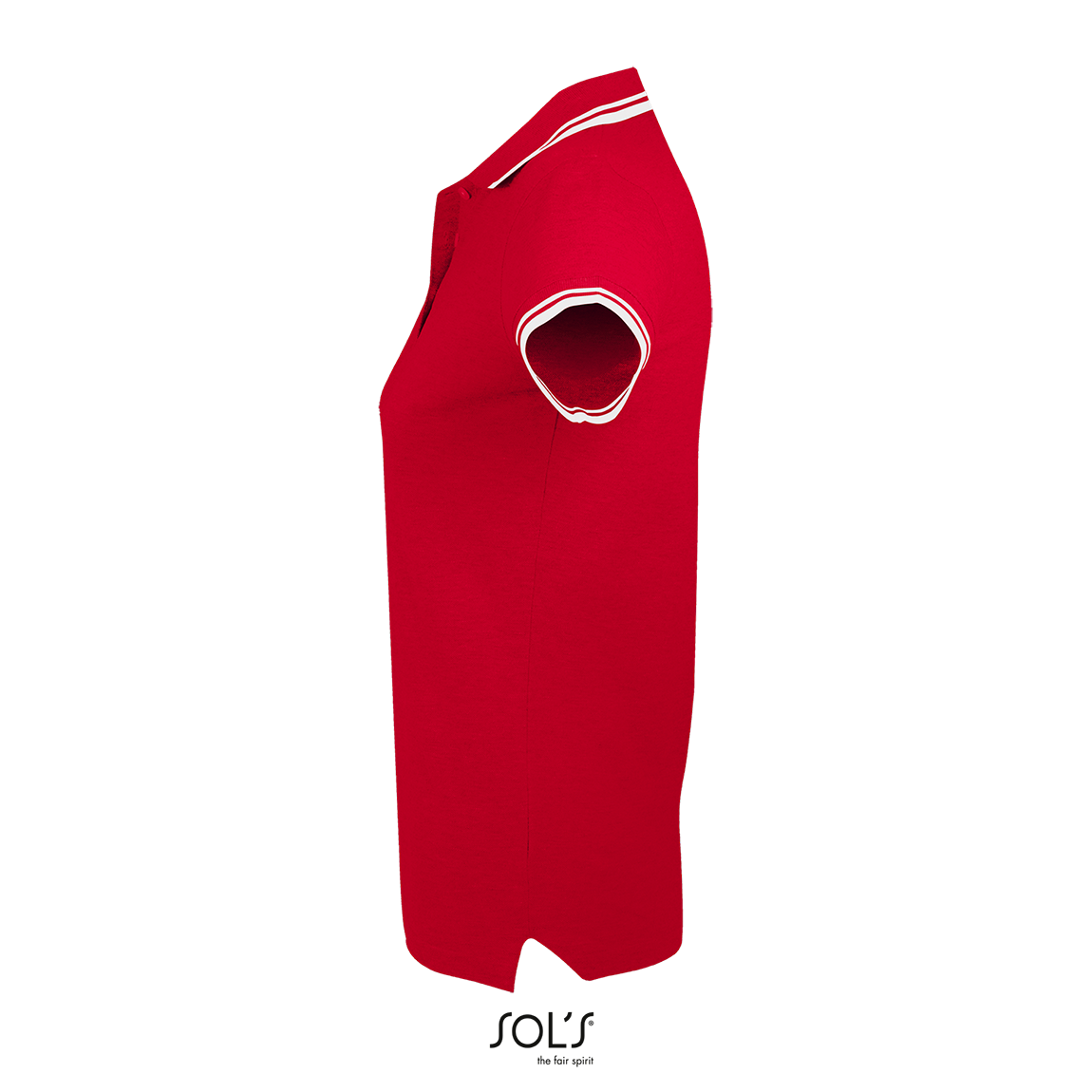 Το γυναικείο πόλο πικέ διαθέτει κοντά μανίκια και πλαϊνά σκισίματα για άνεση στην κίνηση. Η πατιλέτα διαθέτει 3 κουμπιά στον ίδιο τόνο και επιπλέον κουμπί στην εσωτερική ραφή, ενώ ο ριπ γιακάς και τα μανίκια προσθέτουν στυλ. Διατίθεται σε μια στενή γραμμή με ριγέ διχρωμία στο γιακά και τα μανίκια, κάνοντάς το ιδανικό για επαγγελματική χρήση.