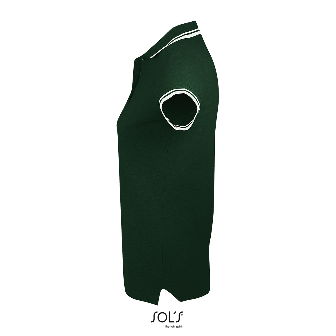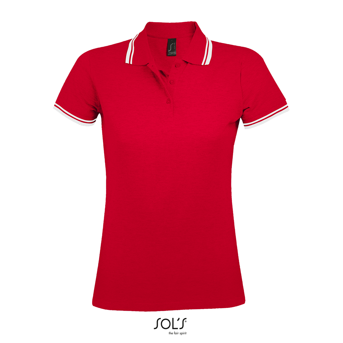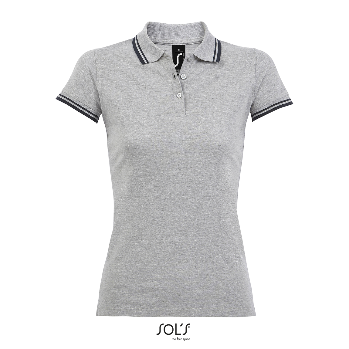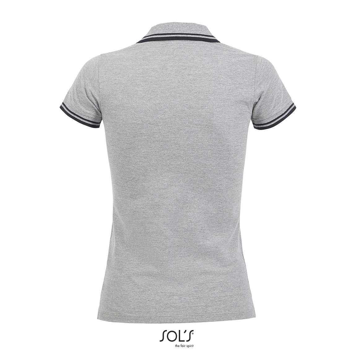 Το γυναικείο πόλο πικέ διαθέτει κοντά μανίκια και πλαϊνά σκισίματα για άνεση στην κίνηση. Η πατιλέτα διαθέτει 3 κουμπιά στον ίδιο τόνο και επιπλέον κουμπί στην εσωτερική ραφή, ενώ ο ριπ γιακάς και τα μανίκια προσθέτουν στυλ. Διατίθεται σε μια στενή γραμμή με ριγέ διχρωμία στο γιακά και τα μανίκια, κάνοντάς το ιδανικό για επαγγελματική χρήση.