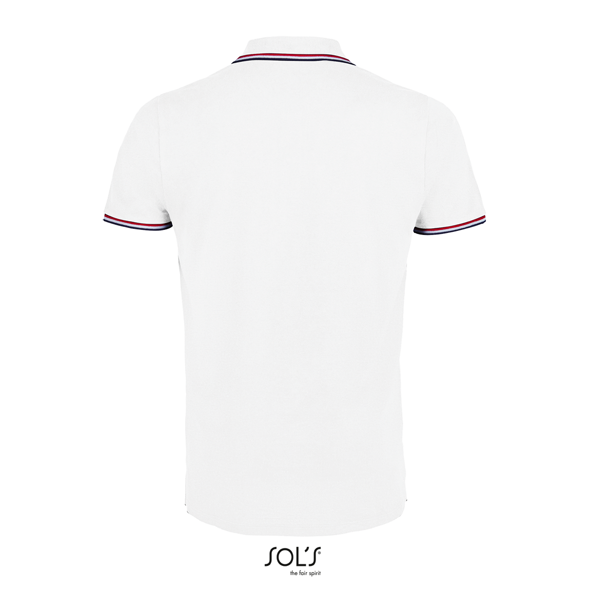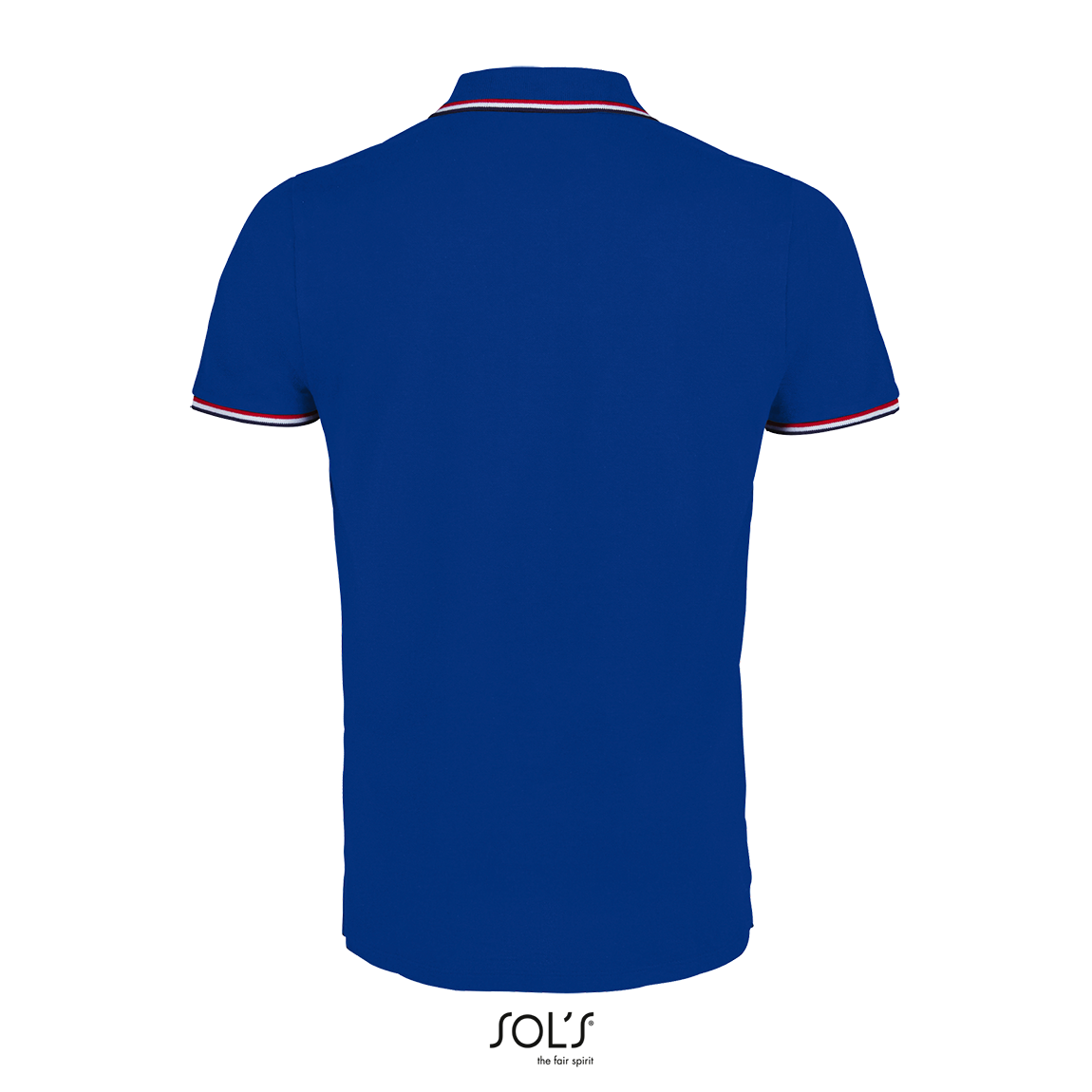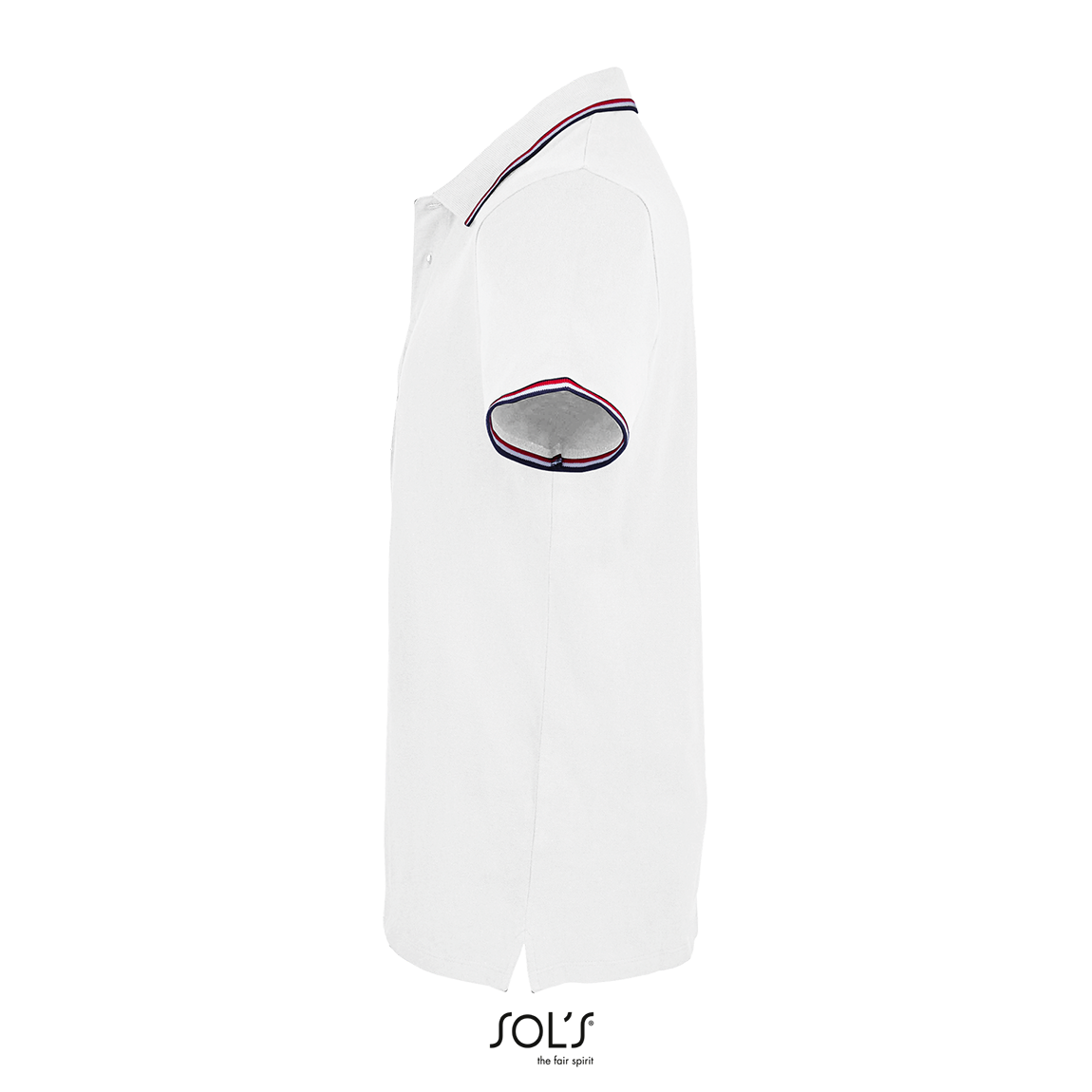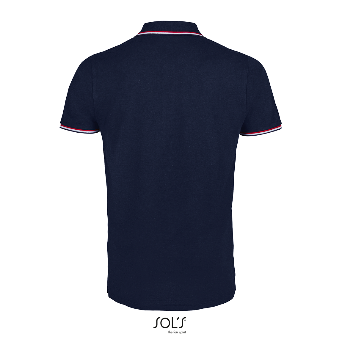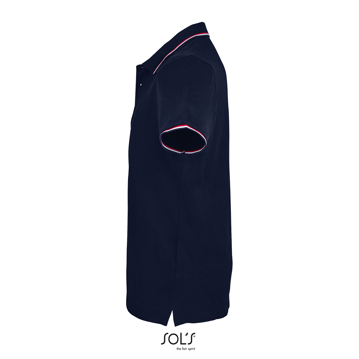 Περιγραφή: Κοντά μανίκια με πλαϊνές ραφές και πατιλέτα με 2 κουμπιά, διακοσμημένες με ρίγες σε χρωματική αντίθεση στο γιακά, τα μανίκια και τα πλαϊνά σκισίματα.