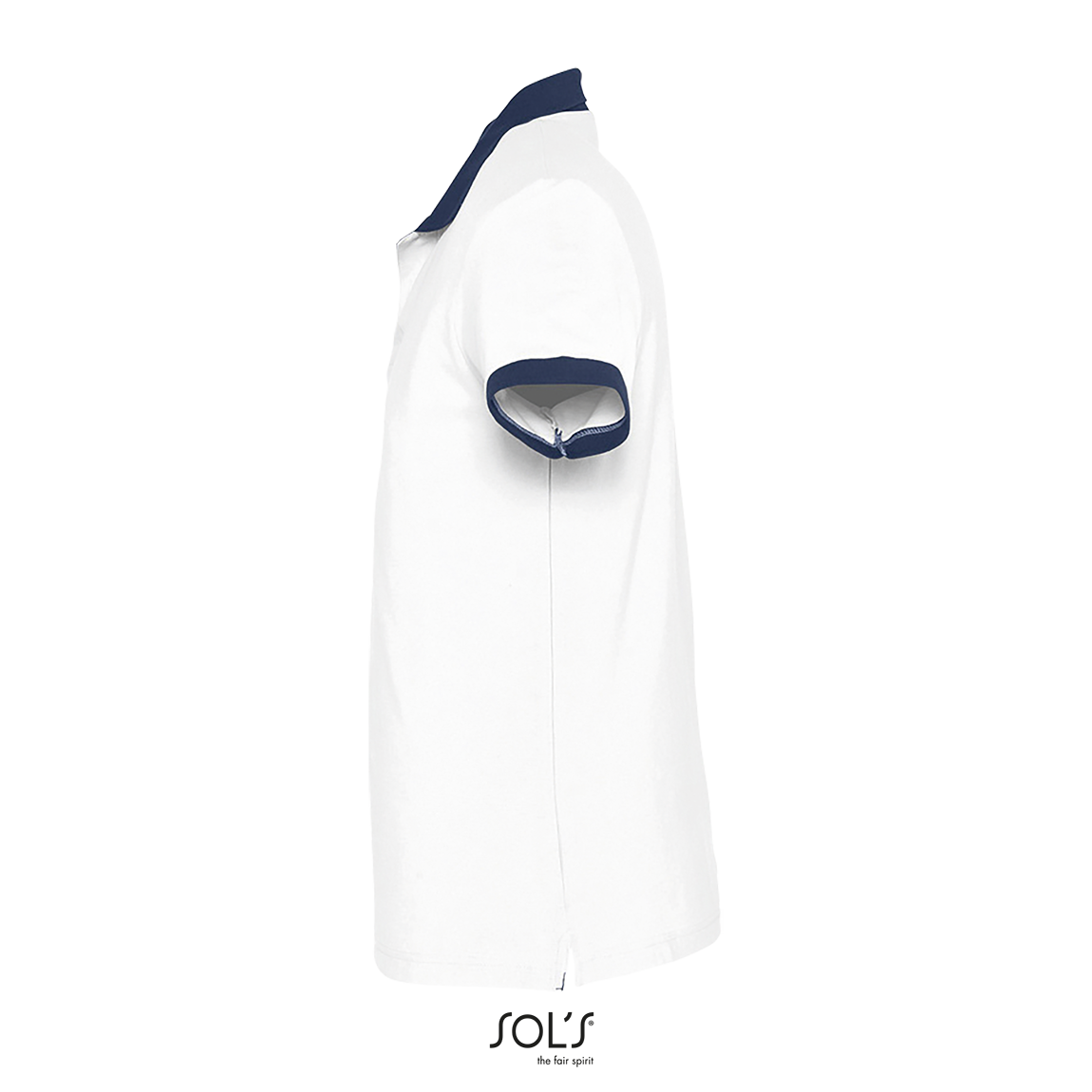 Το συγκεκριμένο πόλο διαθέτει κοντά μανίκια, πλαϊνά σκισίματα και πατιλέτα με 2 κουμπιά στον ίδιο τόνο, καθώς και ένα επιπλέον κουμπί στην εσωτερική ραφή. Ενσωματώνει ελαστικό ριπ στο γιακά και τα μανίκια, με φακαρόλα στο λαιμό και διχρωμία στο γιακά, τα μανίκια και τα πλαϊνά σκισίματα.