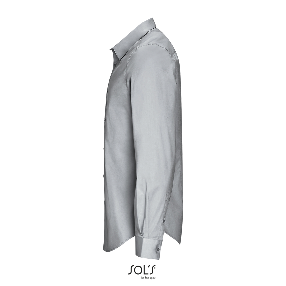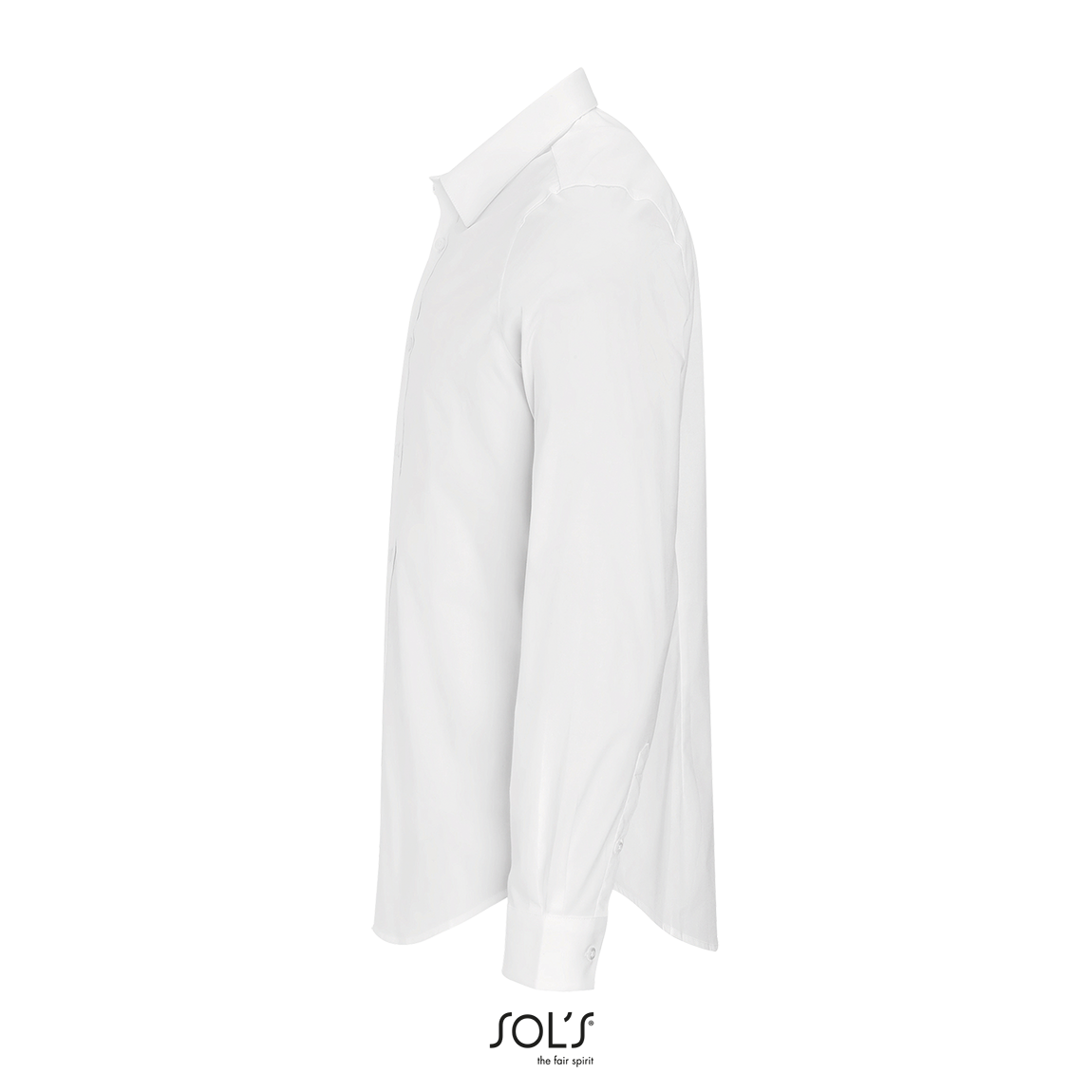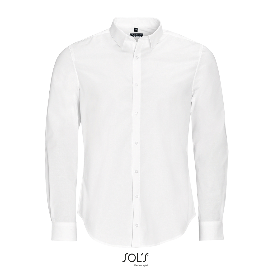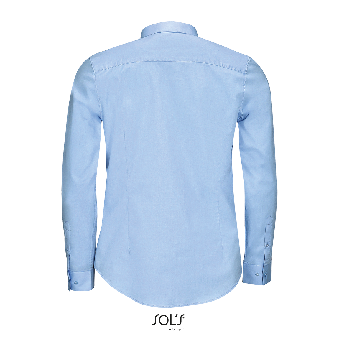 Το ελαστικό πουκάμισο διαθέτει μακριά μανίκια, μοντέρνο γιακά και πατιλέτα με 8 κουμπιά στον ίδιο τόνο. Οι ρυθμιζόμενες μανσέτες με 2 κουμπιά και οι 2 πένσες στην πλάτη προσφέρουν άνετη εφαρμογή και στυλ. Η εφαρμοστή γραμμή του το καθιστά ιδανικό για επαγγελματική ένδυση.