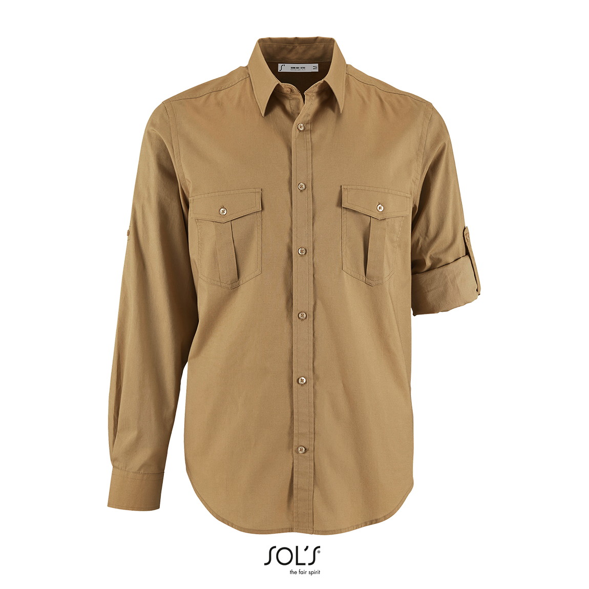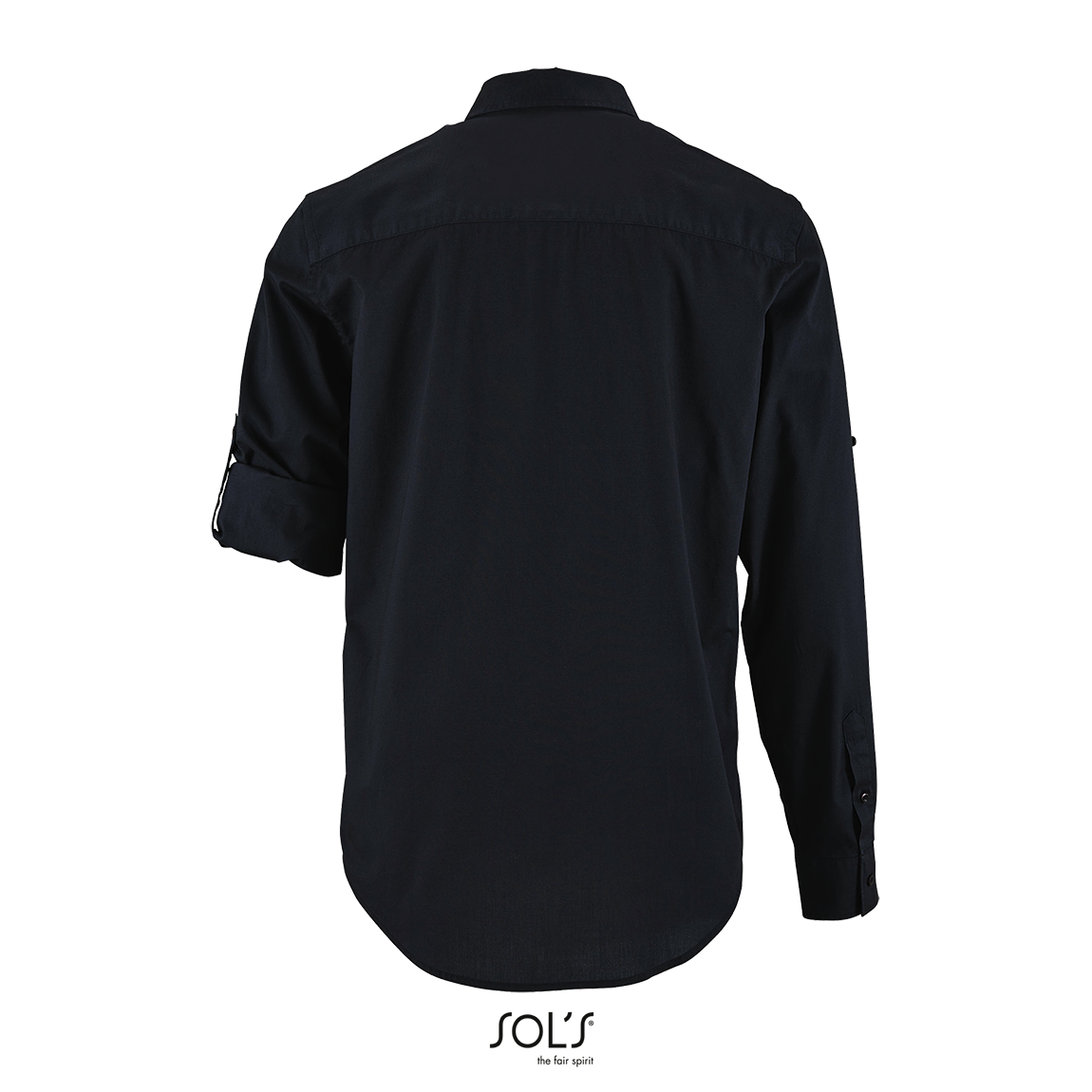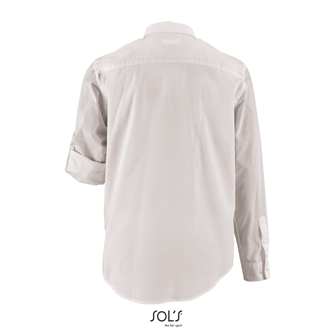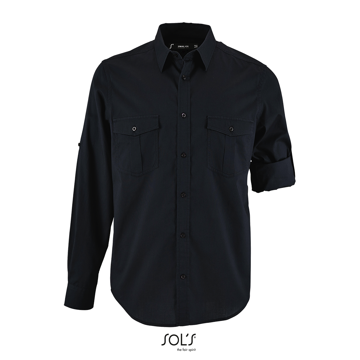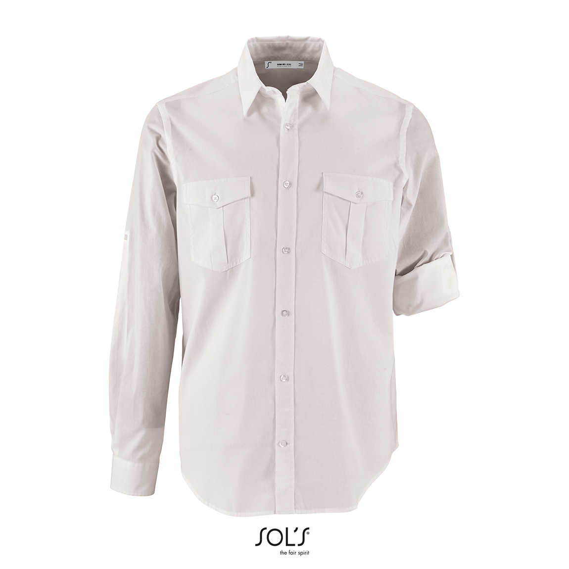 Αυτό το επαγγελματικό πουκάμισο διαθέτει μακριά μανίκια, πατιλέτα με 7 κουμπιά και 2 τσέπες στο στήθος με καπάκι και κουμπί. Οι ίσιες μανσέτες παρέχουν κομψότητα, ενώ οι ρυθμιζόμενες λωρίδες για γύρισμα μανικιών ενισχύουν τη λειτουργικότητα και την εφαρμογή.