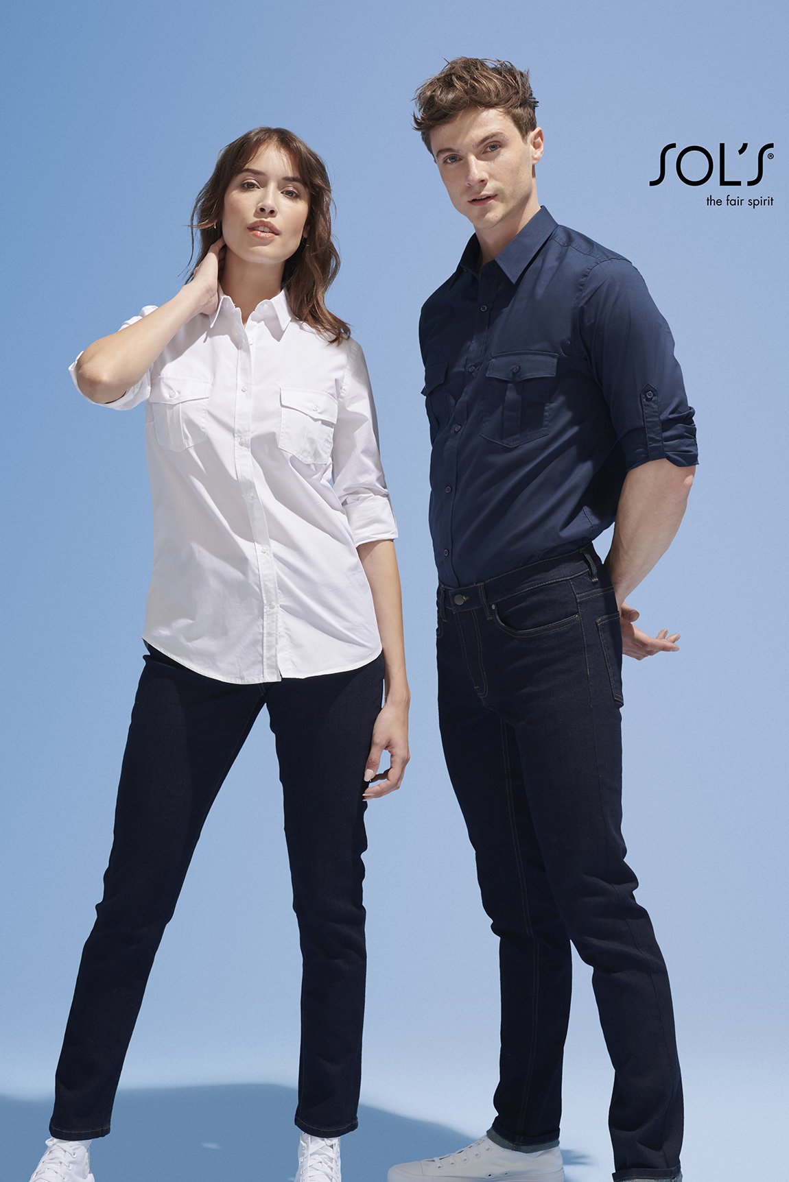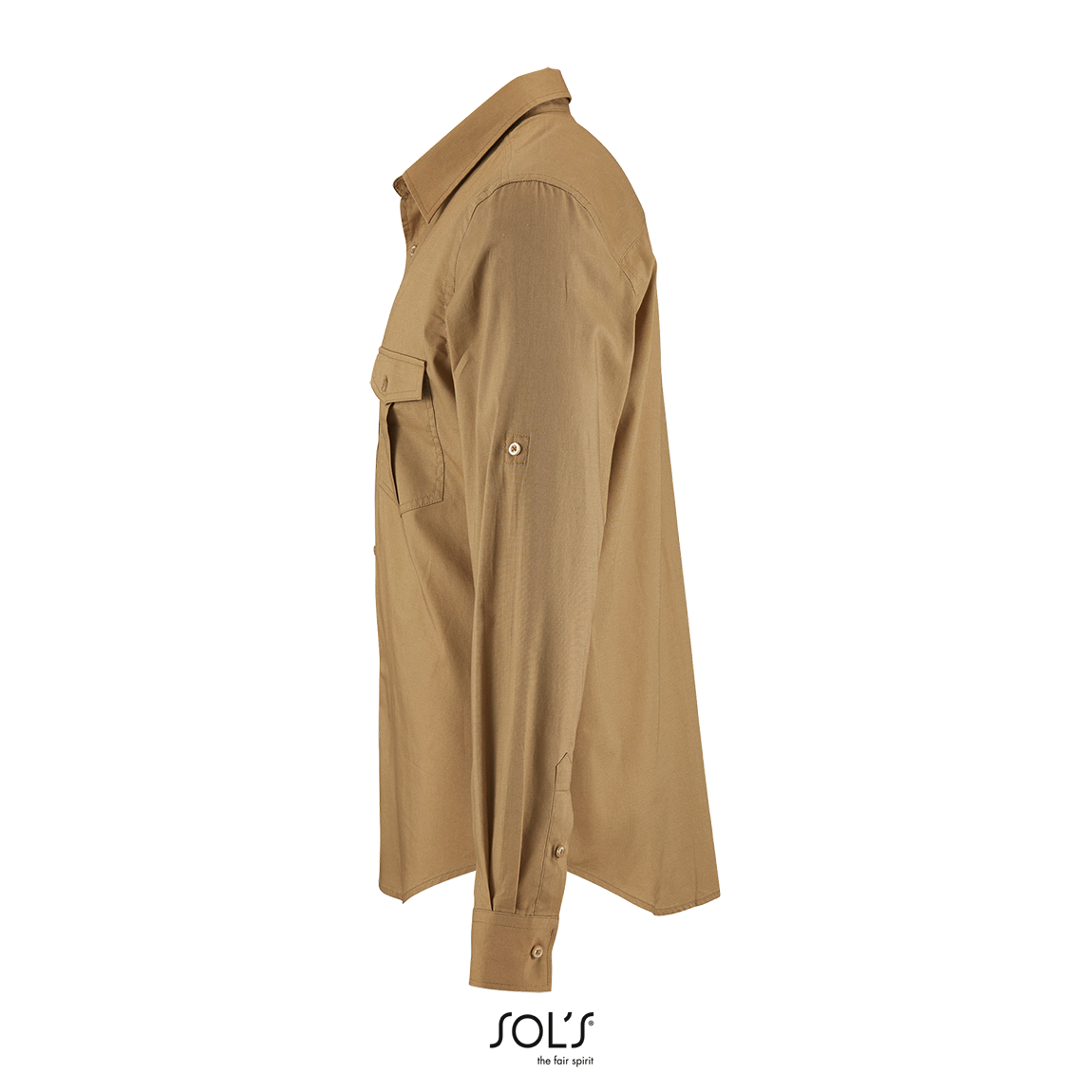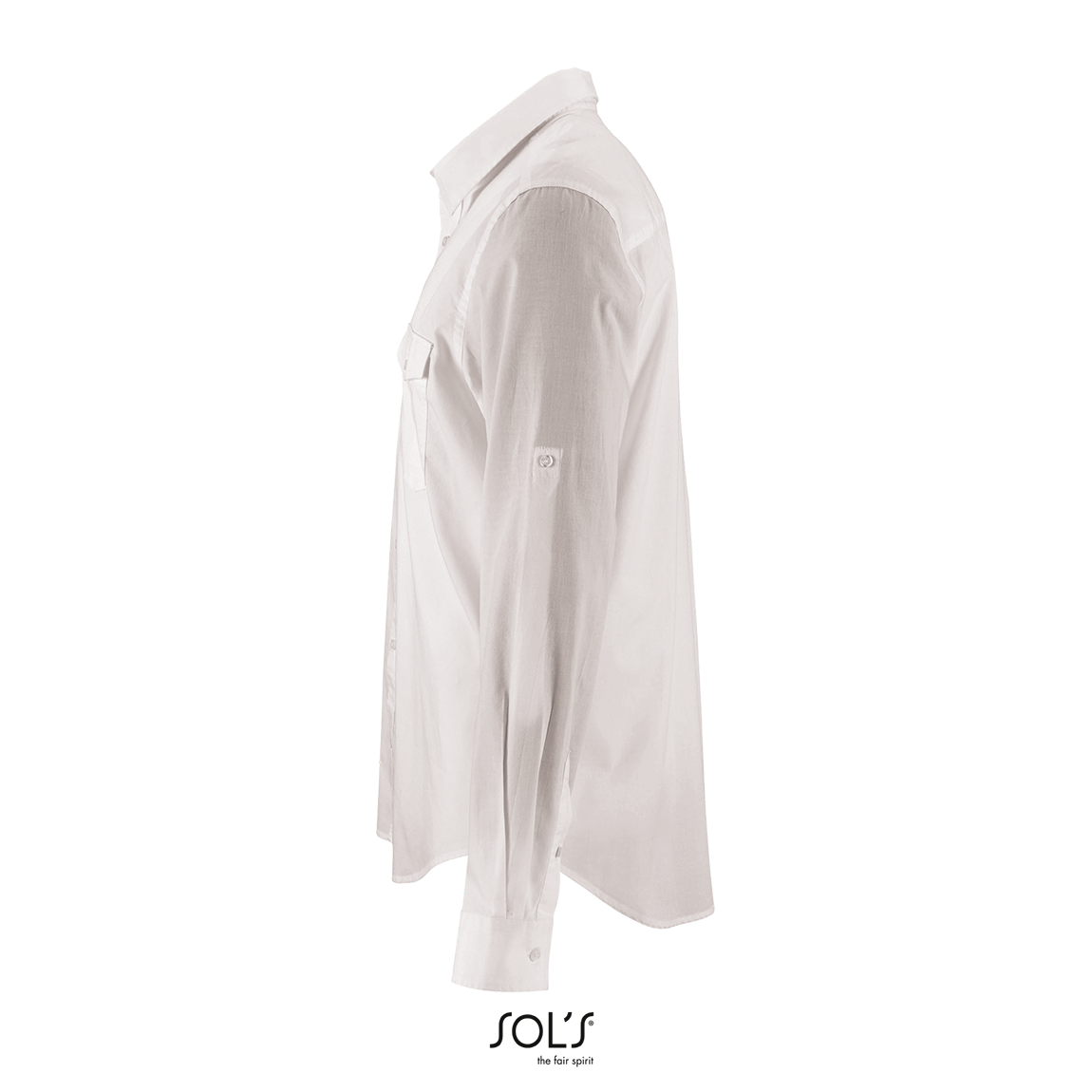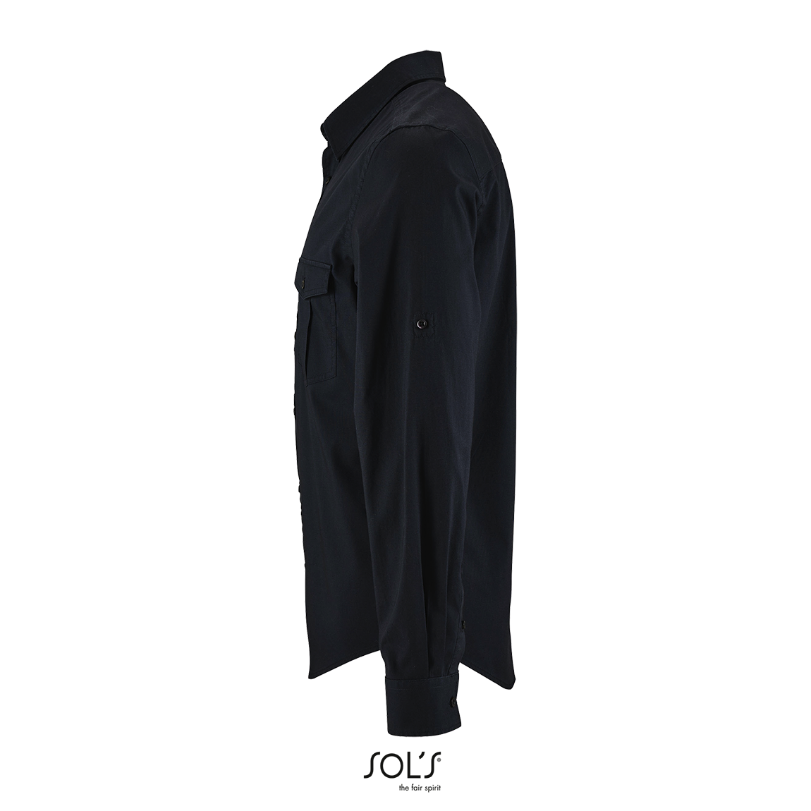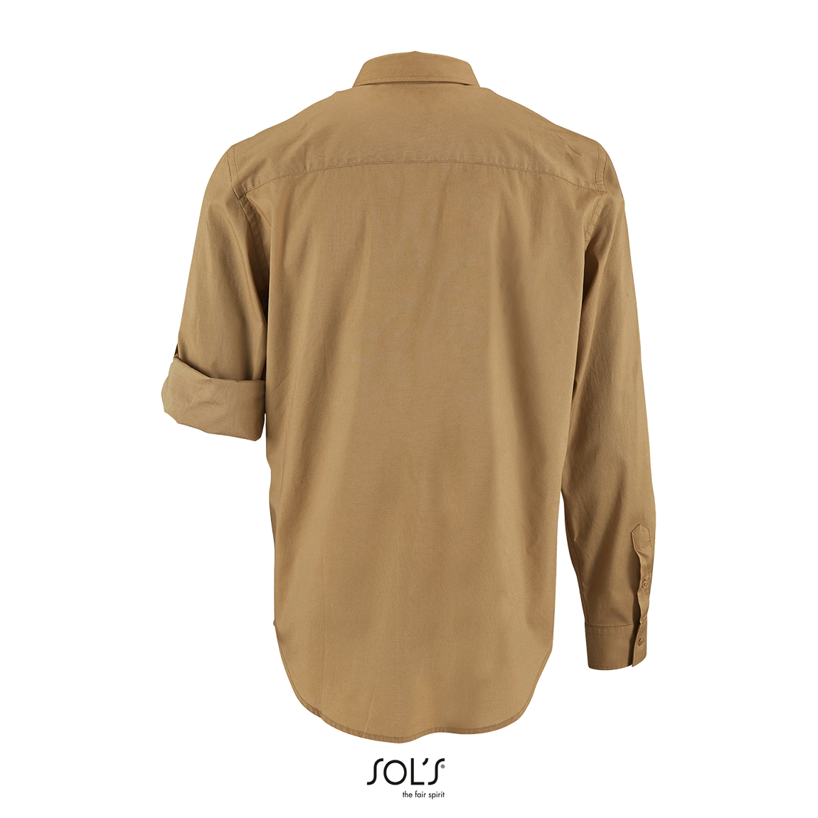 Αυτό το επαγγελματικό πουκάμισο διαθέτει μακριά μανίκια, πατιλέτα με 7 κουμπιά και 2 τσέπες στο στήθος με καπάκι και κουμπί. Οι ίσιες μανσέτες παρέχουν κομψότητα, ενώ οι ρυθμιζόμενες λωρίδες για γύρισμα μανικιών ενισχύουν τη λειτουργικότητα και την εφαρμογή.