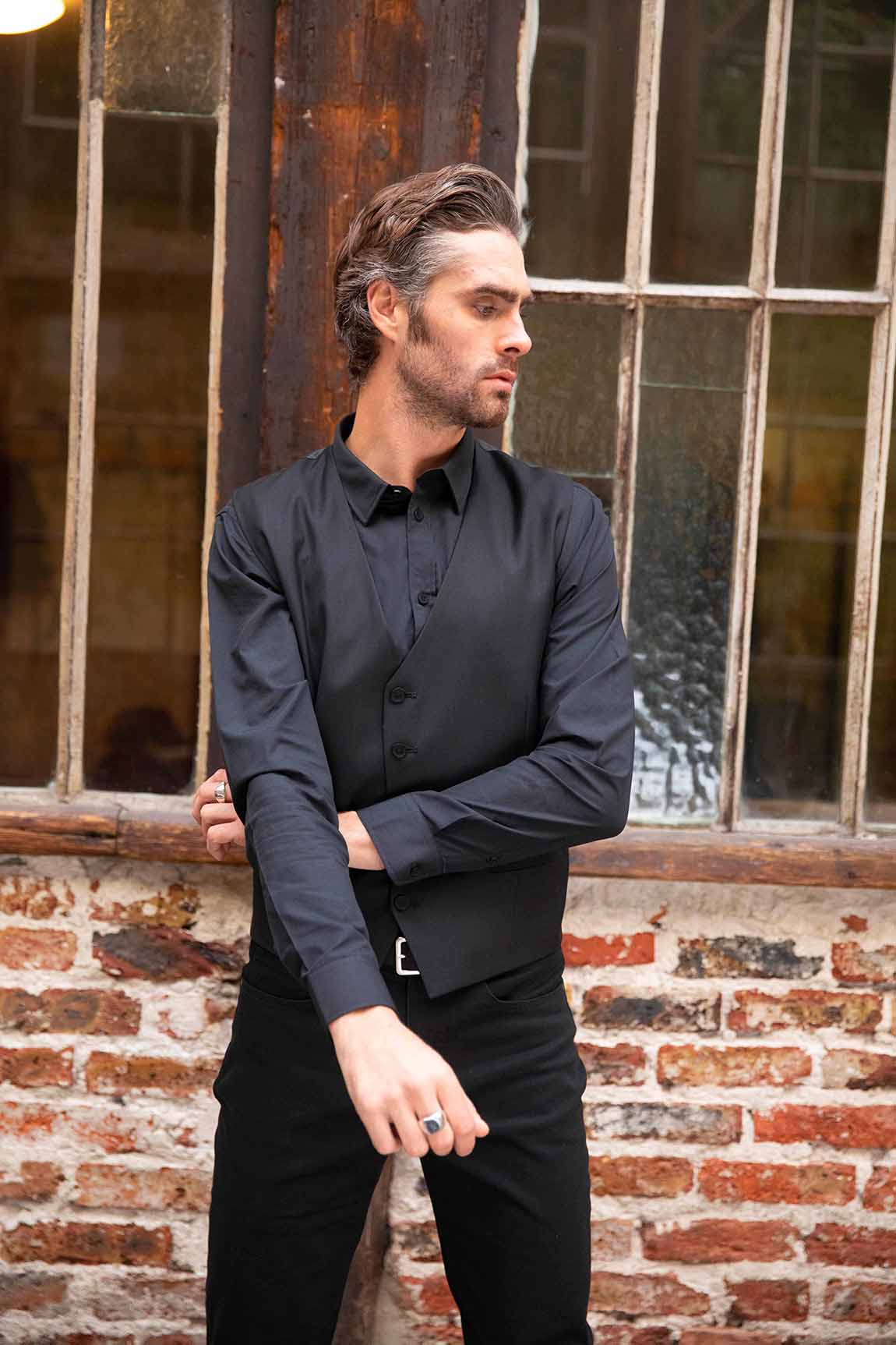 Το ανδρικό πουκάμισο διαθέτει μακριά μανίκια με ιταλικό γιακά και στρογγυλεμένες μανσέτες με 2 κουμπιά. Η πατιλέτα του με 7 κουμπιά εξασφαλίζει ευκολία στην εφαρμογή και είναι ιδανική για επαγγελματική ένδυση.