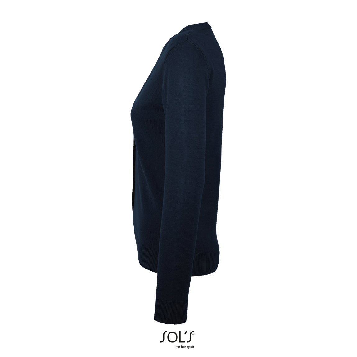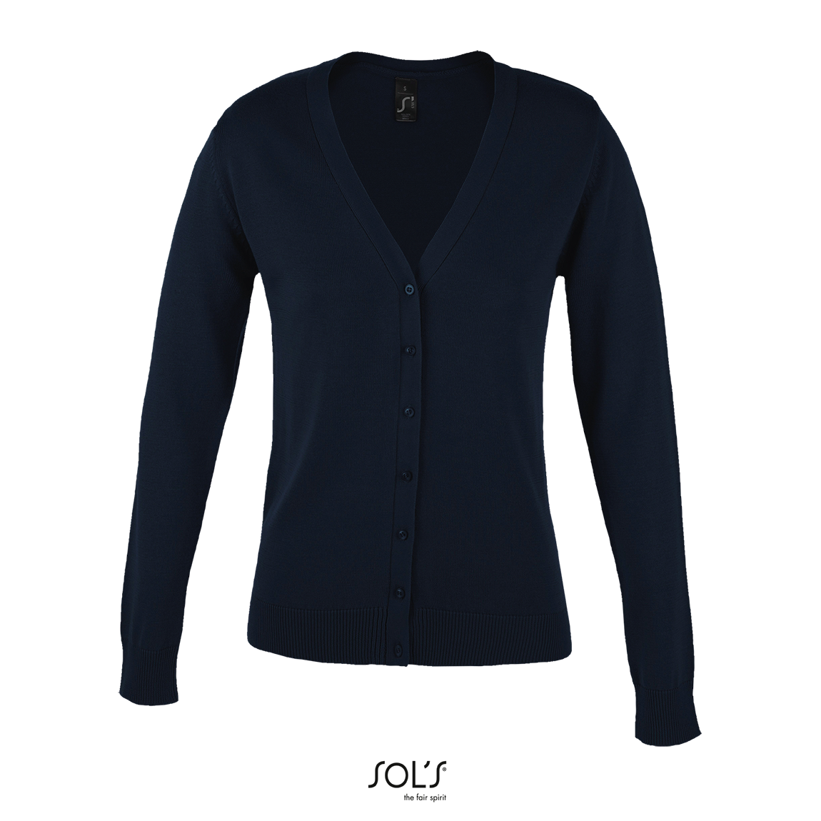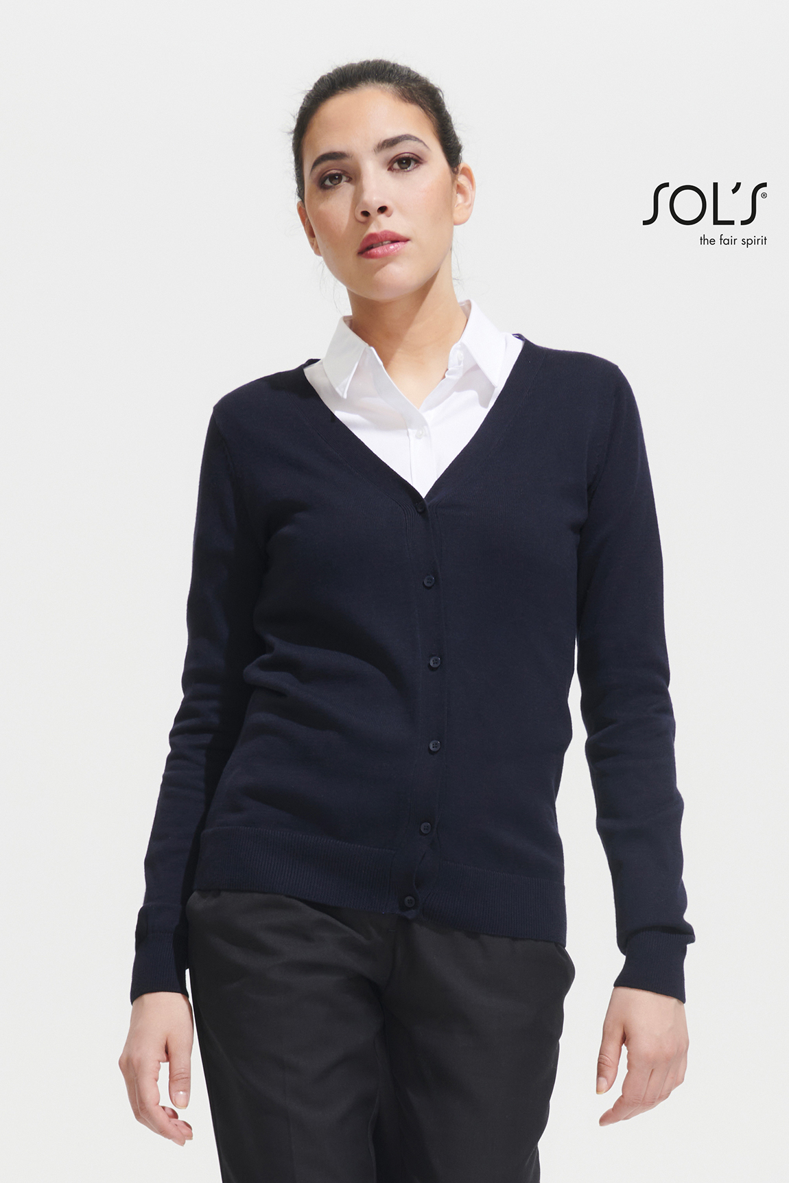Η γυναικεία πλεκτή ζακέτα διαθέτει λαιμόκοψη V, μοντέρνες μασχάλες και ριπ στις μανσέτες και τη μέση. Περιλαμβάνει πλεκτή πατιλέτα με κουμπιά στον ίδιο τόνο, παρέχοντας μια κομψή και επαγγελματική εμφάνιση. Οι εξωτερικές ραφές προσθέτουν μοναδικό στιλ με εφαρμοστή γραμμή.
