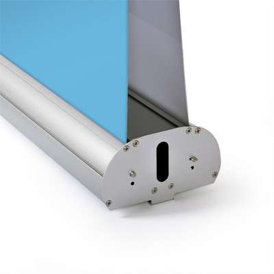 • Η στιβαρή κατασκευή του του roll up stand διπλής όψης από αλουμίνιο