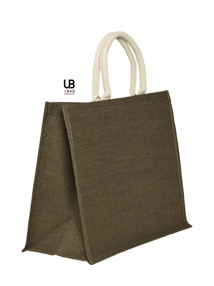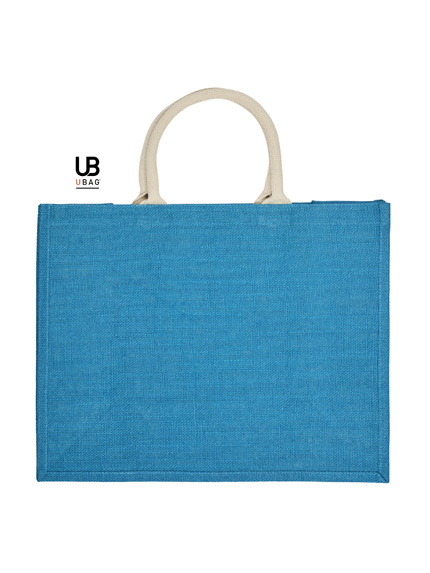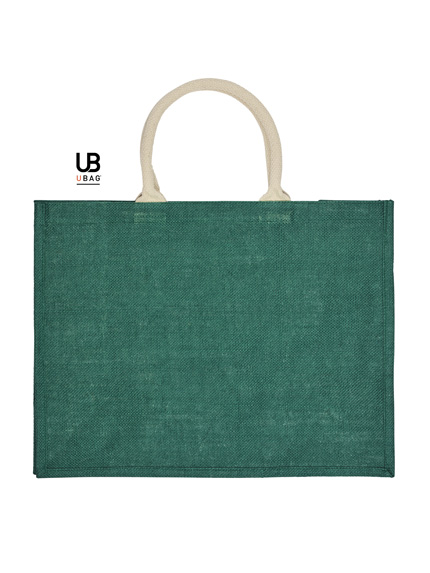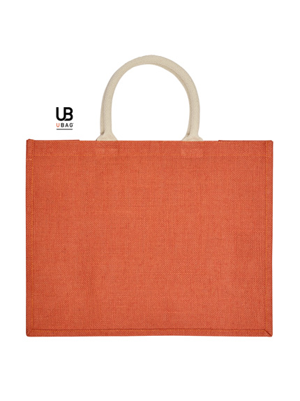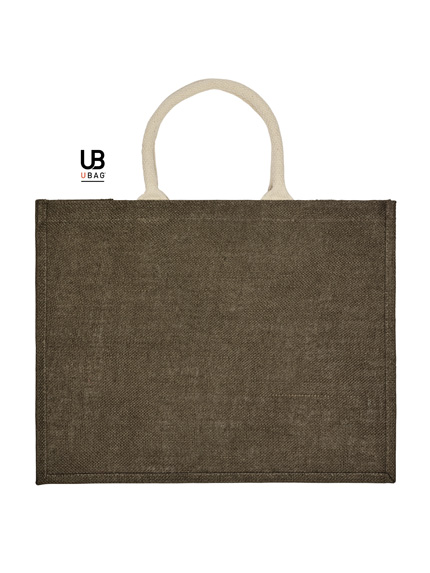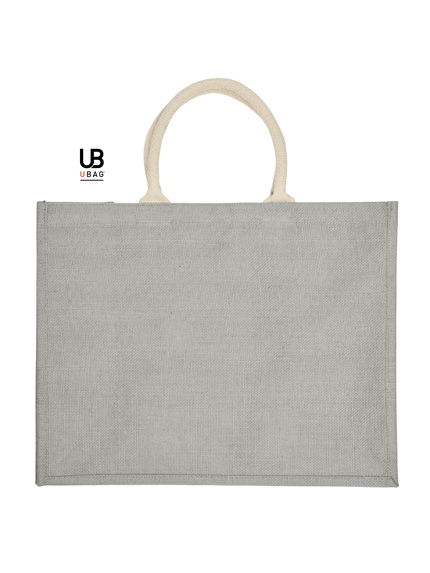 Η τσάντα είναι φτιαγμένη από 100% γιούτα με PP πλαστικοποίηση εσωτερικά, προσφέροντας ανθεκτικότητα και λειτουργικότητα. Διαθέτει κοντά, στρογγυλά χερούλια με ενισχυμένες ραφές σε χρωματική αντίθεση, καθώς και πιέτα για επιπλέον χωρητικότητα. Οι διαστάσεις της είναι 43 x 34 x 19 εκ. και η χωρητικότητα φτάνει τα 28L.
