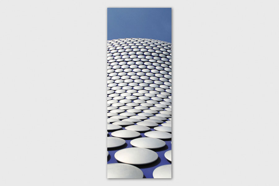Υφασμάτινο αυτοκόλλητο ψυγείου που απεικονίζει αρχιτεκτονικές λεπτομέρειες με γεωμετρικά σχήματα.