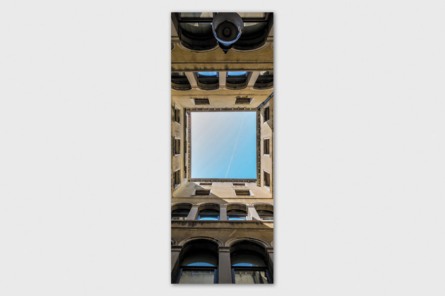Υφασμάτινο αυτοκόλλητο ψυγείου που απεικονίζει αρχιτεκτονικές λεπτομέρειες.