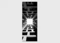 Υφασμάτινο αυτοκόλλητο ψυγείου που απεικονίζει αρχιτεκτονικές λεπτομέρειες.