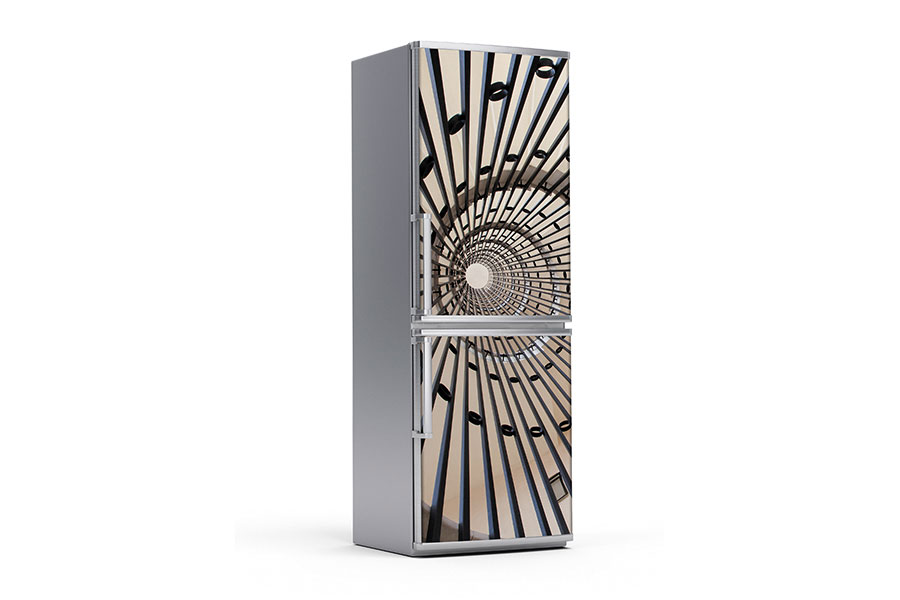 Υφασμάτινο αυτοκόλλητο ψυγείου που απεικονίζει αρχιτεκτονικές λεπτομέρειες.