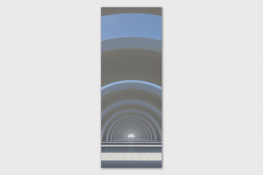 Υφασμάτινο αυτοκόλλητο ψυγείου που απεικονίζει αρχιτεκτονικές λεπτομέρειες με γεωμετρικά σχήματα.