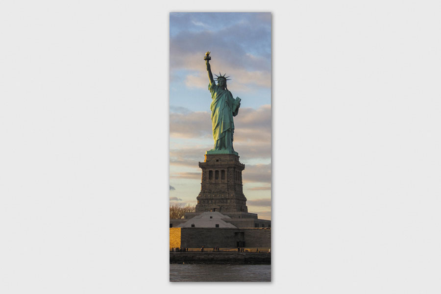 Υφασμάτινο αυτοκόλλητο ψυγείου που απεικονίζει το άγαλμα της ελευθερίας κατά τη δύση του ήλιου.