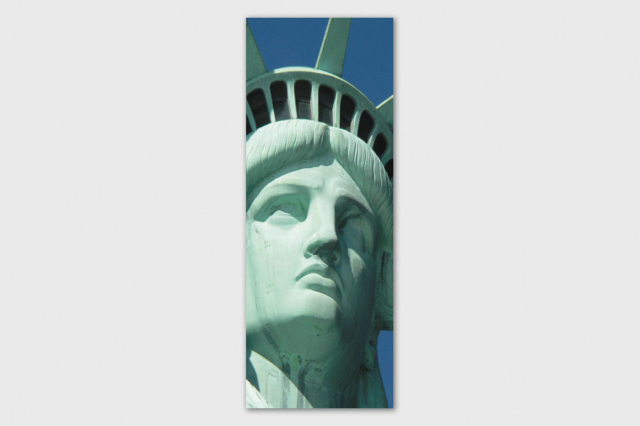Υφασμάτινο αυτοκόλλητο ψυγείου που απεικονίζει το πρόσωπο από το άγαλμα της ελευθερίας.