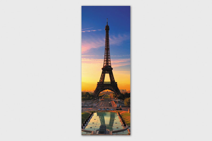 Υφασμάτινο αυτοκόλλητο ψυγείου που απεικονίζει τον πύργο του Eiffel με φόντο την ανατολή του ήλιου.