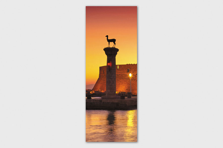 Υφασμάτινο αυτοκόλλητο ψυγείου που απεικονίζει την είσοδο στο παλιό λιμάνι της Ρόδου.