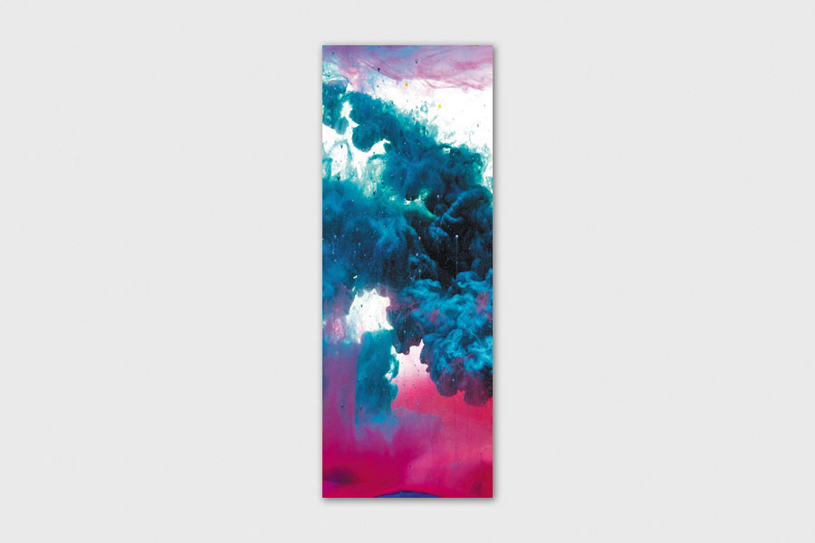 Υφασμάτινο αυτοκόλλητο ψυγείου που απεικονίζει γαλάζιο και φούξια χρώμα να διαλύονται μέσα σε νερό.
