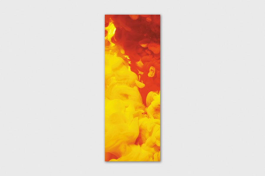 Υφασμάτινο αυτοκόλλητο ψυγείου που απεικονίζει κίτρινο και κόκκινο χρώμα να διαλύονται μέσα σε νερό.