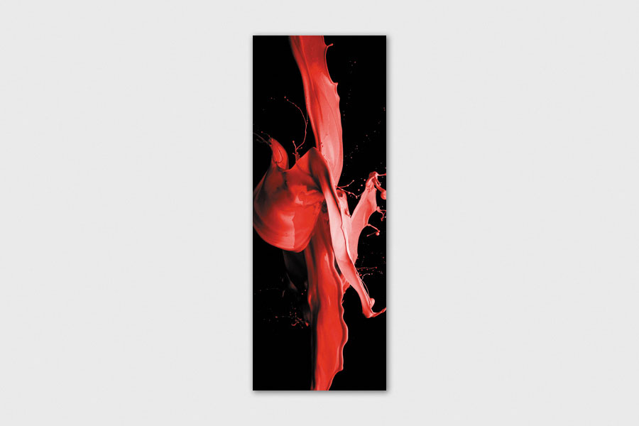 Υφασμάτινο αυτοκόλλητο ψυγείου που απεικονίζει κόκκινη μπογιά στον αέρα σε μαύρο φόντο.