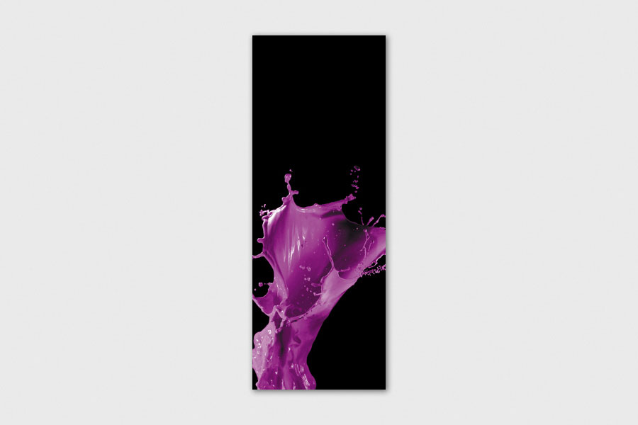 Υφασμάτινο αυτοκόλλητο ψυγείου που απεικονίζει μωβ μπογιά στον αέρα σε μαύρο φόντο.