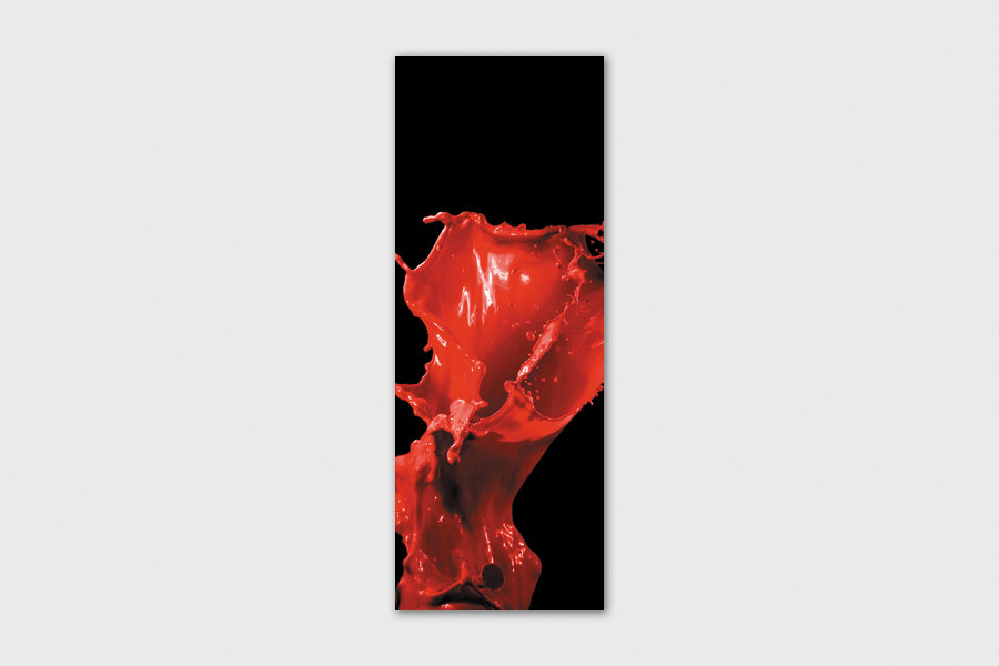 Υφασμάτινο αυτοκόλλητο ψυγείου που απεικονίζει κόκκινη μπογιά στον αέρα σε μαύρο φόντο.