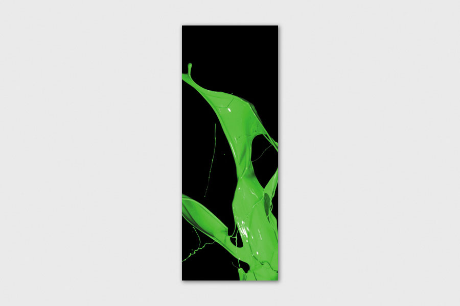 Υφασμάτινο αυτοκόλλητο ψυγείου που απεικονίζει πράσινη μπογιά στον αέρα σε μαύρο φόντο.