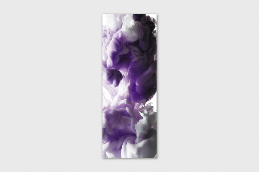 Υφασμάτινο αυτοκόλλητο ψυγείου που απεικονίζει λευκό και μωβ χρώμα να διαλύονται μέσα σε νερό.
