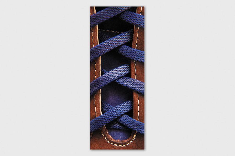 Υφασμάτινο αυτοκόλλητο ψυγείου που απεικονίζει κορδόνια από ένα δερμάτινο παπούτσι.