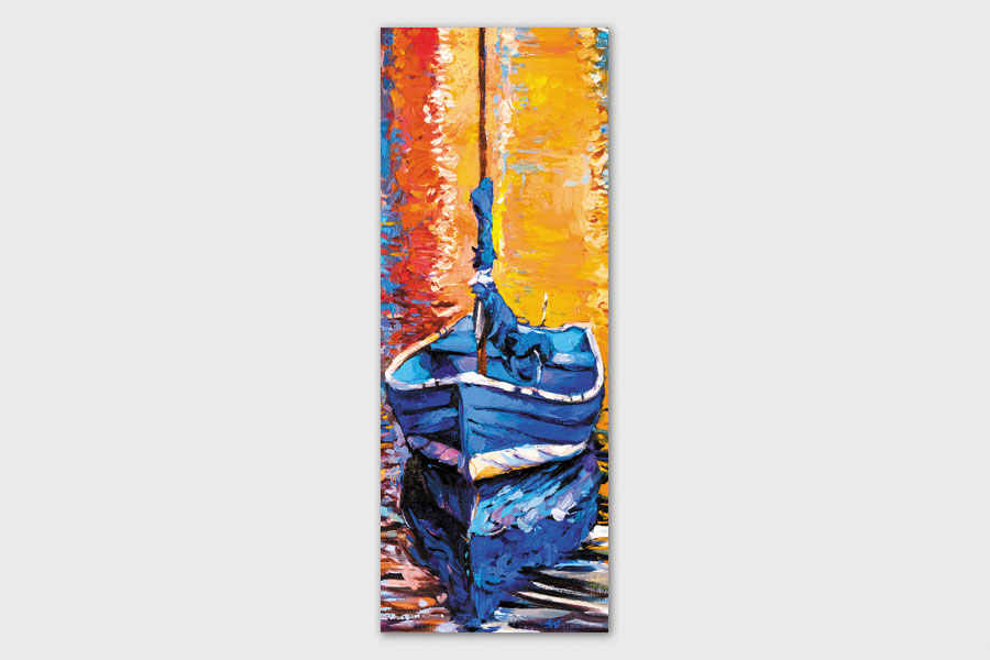 Υφασμάτινο αυτοκόλλητο ψυγείου που απεικονίζει ένα ζωγραφικό πίνακα που δείχνει μια βάρκα με κατάρτι.