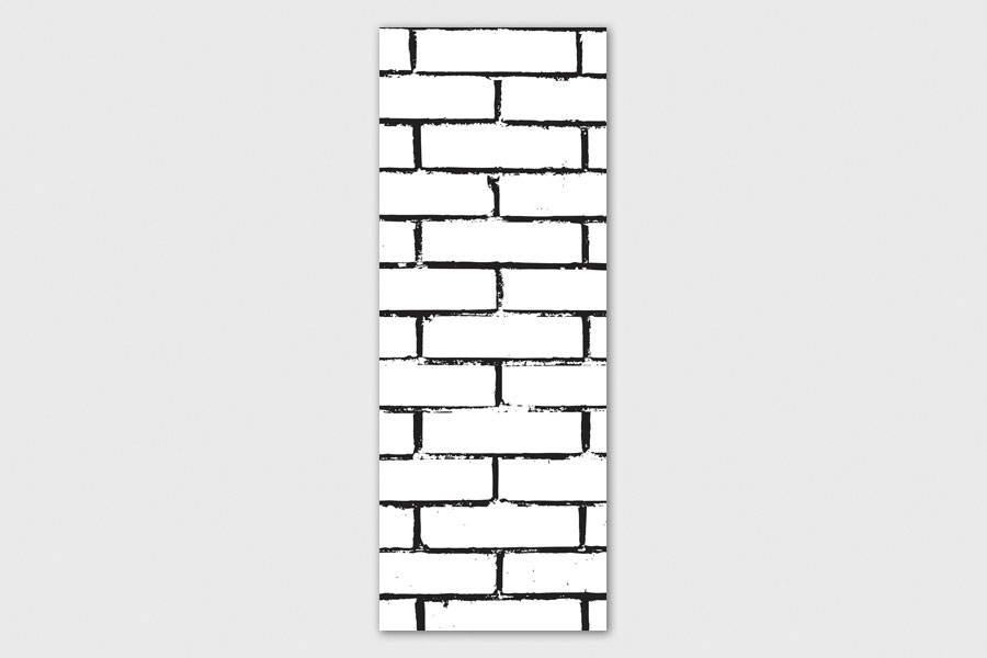 Υφασμάτινο αυτοκόλλητο ψυγείου που απεικονίζει ένα γραφικό σχέδιο από έναν τοίχο με λευκά τούβλα.