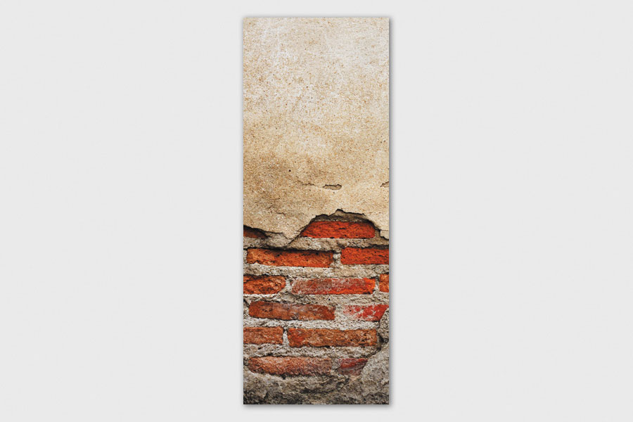 Υφασμάτινο αυτοκόλλητο ψυγείου που απεικονίζει έναν τοίχο σπασμένο όπου φαίνονται τα τούβλα από μέσα.