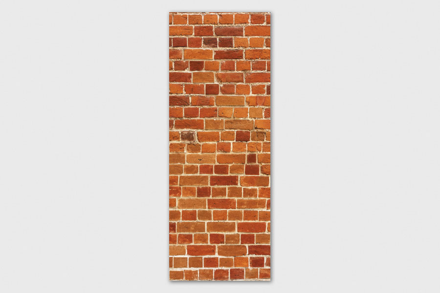 Υφασμάτινο αυτοκόλλητο ψυγείου που απεικονίζει έναν τοίχο με κόκκινα τούβλα.