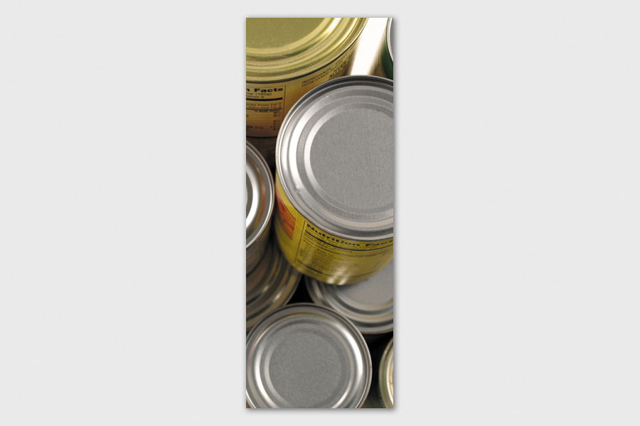 Υφασμάτινο αυτοκόλλητο ψυγείου που απεικονίζει διάφορες κονσέρβες.
