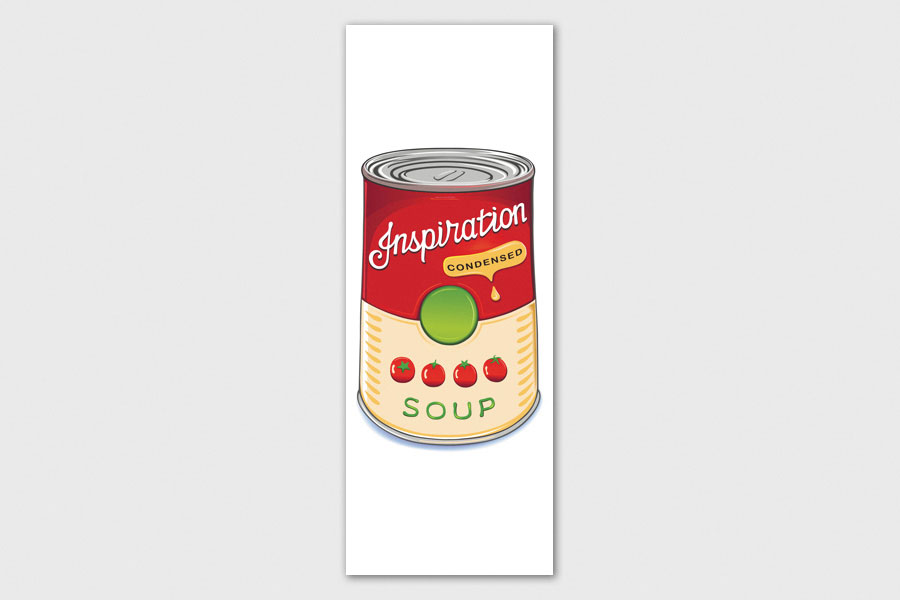 Υφασμάτινο αυτοκόλλητο ψυγείου που απεικονίζει σε σχέδιο μια κονσέρβα σούπα ντομάτας.