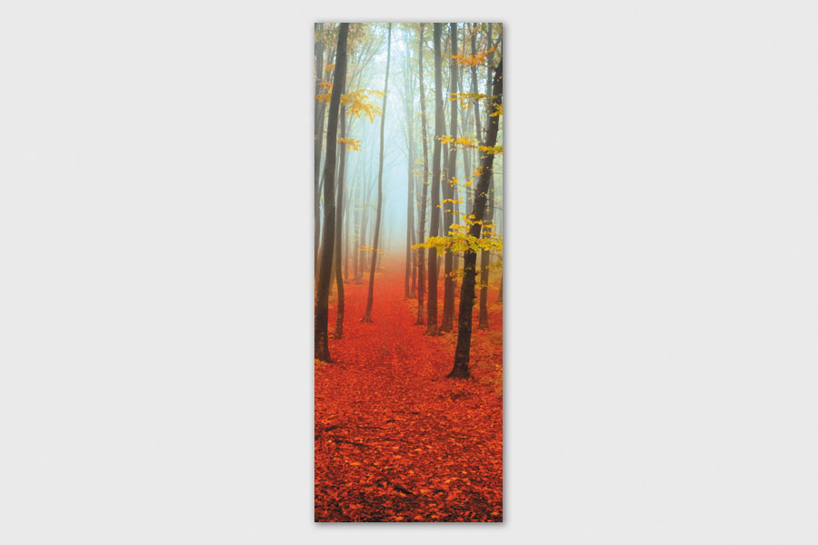 Υφασμάτινο αυτοκόλλητο ψυγείου που απεικονίζει κορμούς δέντρων σε ένα δάσος το φθινόπωρο.
