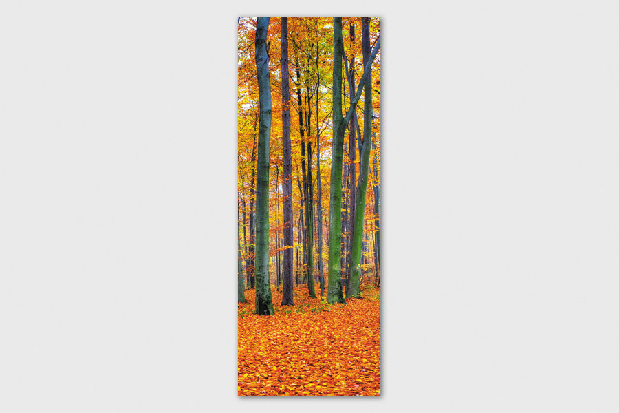 Υφασμάτινο αυτοκόλλητο ψυγείου που απεικονίζει κορμούς δέντρων σε ένα δάσος το φθινόπωρο.