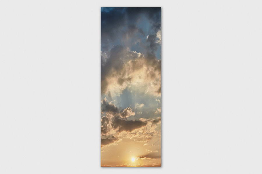 Υφασμάτινο αυτοκόλλητο ψυγείου που απεικονίζει ηλιοβασίλεμα ανάμεσα στα σύννεφα.