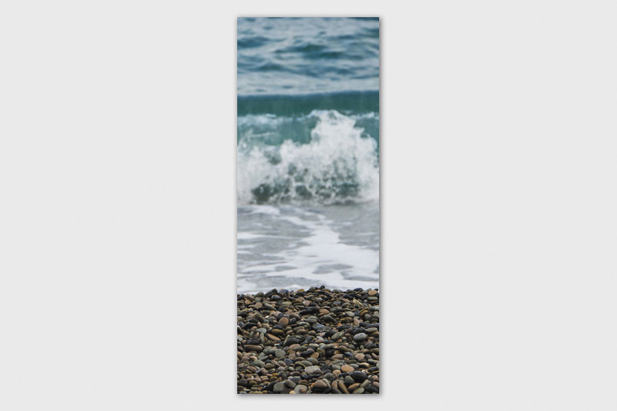 Υφασμάτινο αυτοκόλλητο ψυγείου που απεικονίζει μια παραλία με βότσαλα.