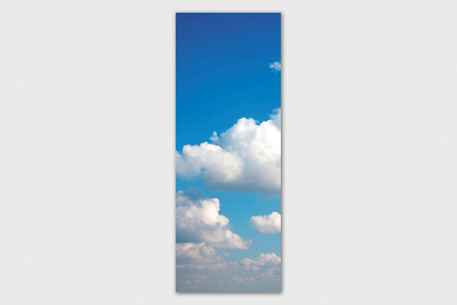 Υφασμάτινο αυτοκόλλητο ψυγείου που απεικονίζει άσπρα σύννεφα σε γαλάζιο ουρανό.