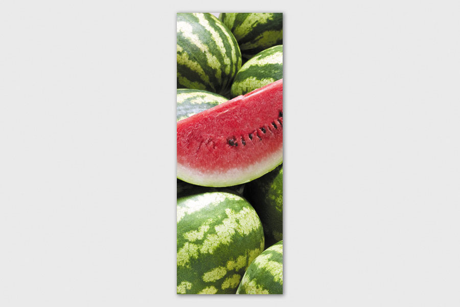 Υφασμάτινο αυτοκόλλητο ψυγείου που απεικονίζει πολλά καρπούζια με ένα κομμένο στη μέση.