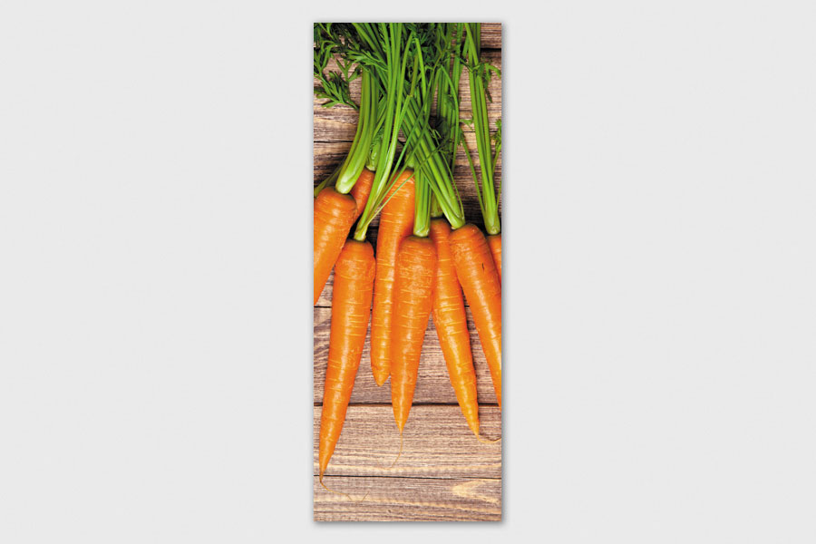 Υφασμάτινο αυτοκόλλητο ψυγείου που απεικονίζει καρότα πάνω σε ξύλινη επιφάνεια.