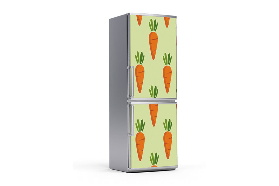Υφασμάτινο αυτοκόλλητο ψυγείου που απεικονίζει σε σχέδιο καρρότα σε ανοιχτό πράσινο φόντο.