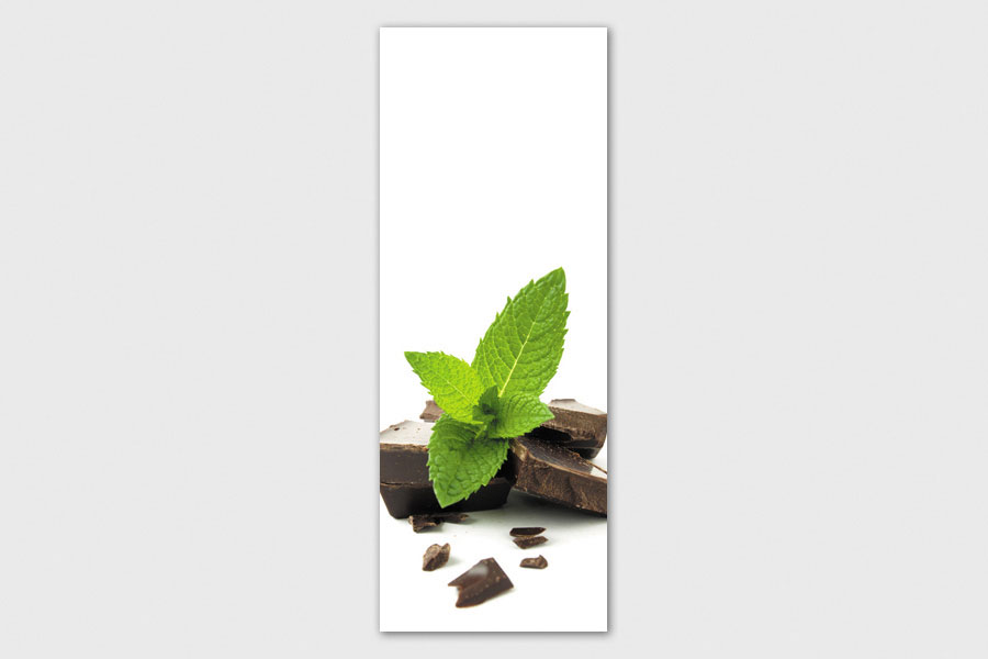 Υφασμάτινο αυτοκόλλητο ψυγείου που απεικονίζει κομμάτια σοκολάτας και φύλλα μέντας.