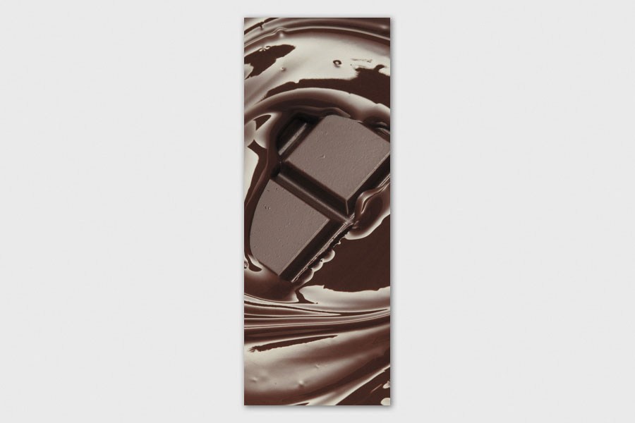 Υφασμάτινο αυτοκόλλητο ψυγείου που απεικονίζει μια μπάρα σοκολάτας με το μισό περιτύλιγμα.