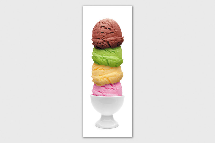 Υφασμάτινο αυτοκόλλητο ψυγείου που απεικονίζει ένα μπολ παγωτού με 4 γεύσεις η μία πάνω παό την άλλη.