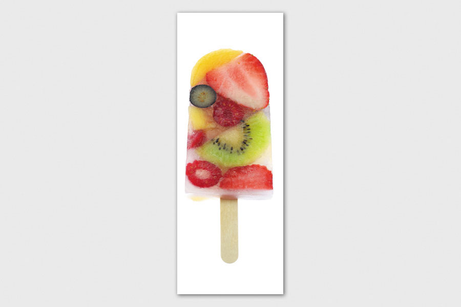 Υφασμάτινο αυτοκόλλητο ψυγείου που απεικονίζει ένα ξυλάκι παγωτο γρανίτα με διάφορα φρούτα.
